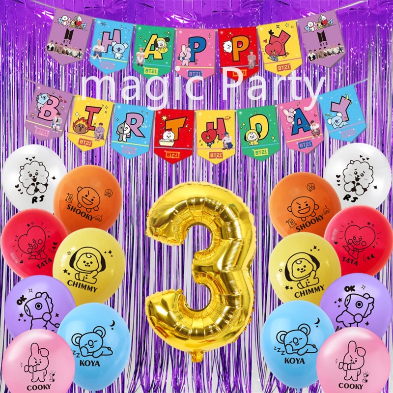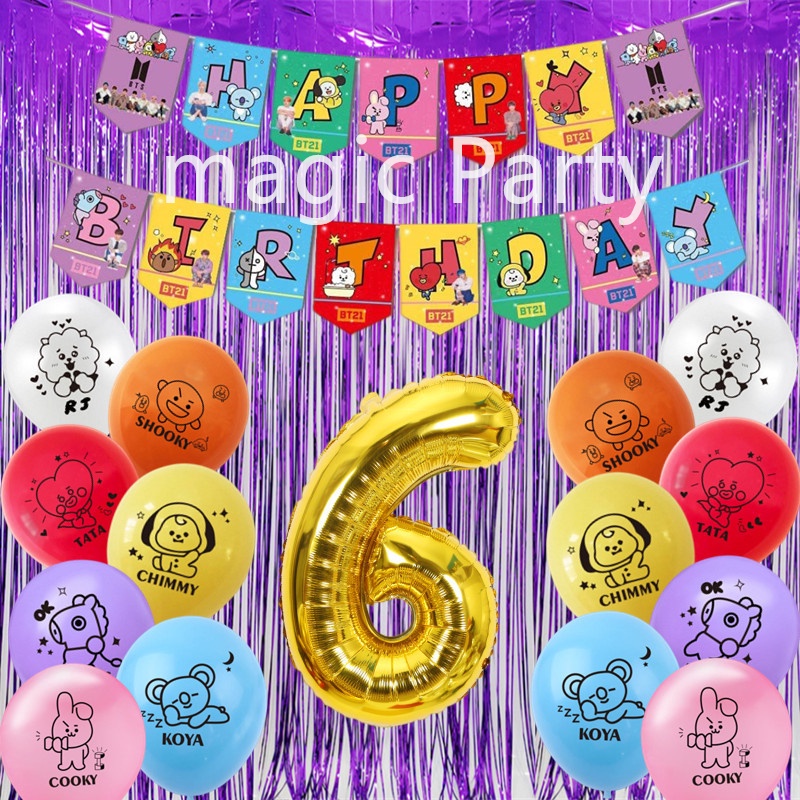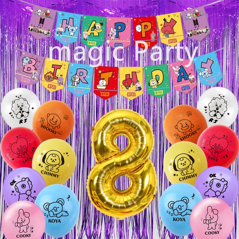 18pcs/set BTS Bangtan Boys Balloons Party Decoration Set BT 21 Birthday Latex Balloons Bangtan Boys Star Theme Party Supplies