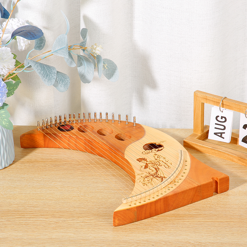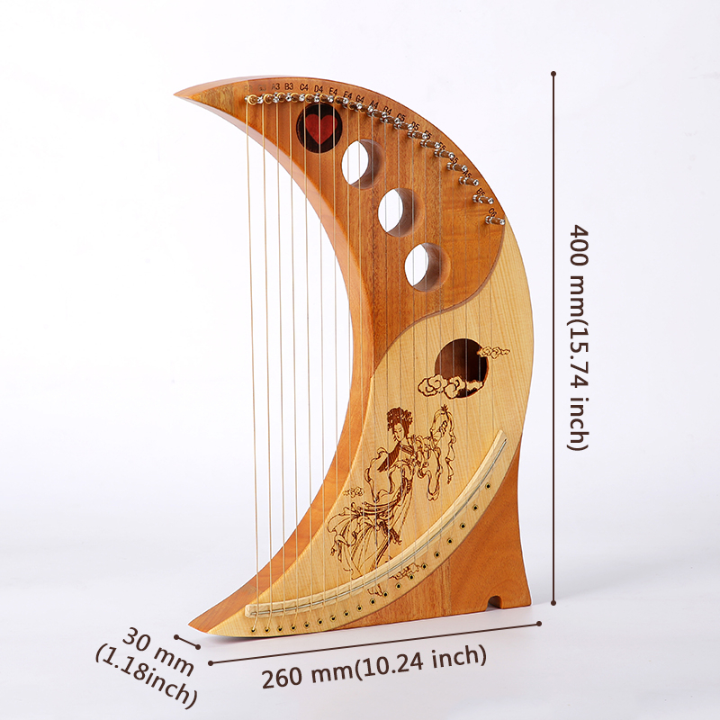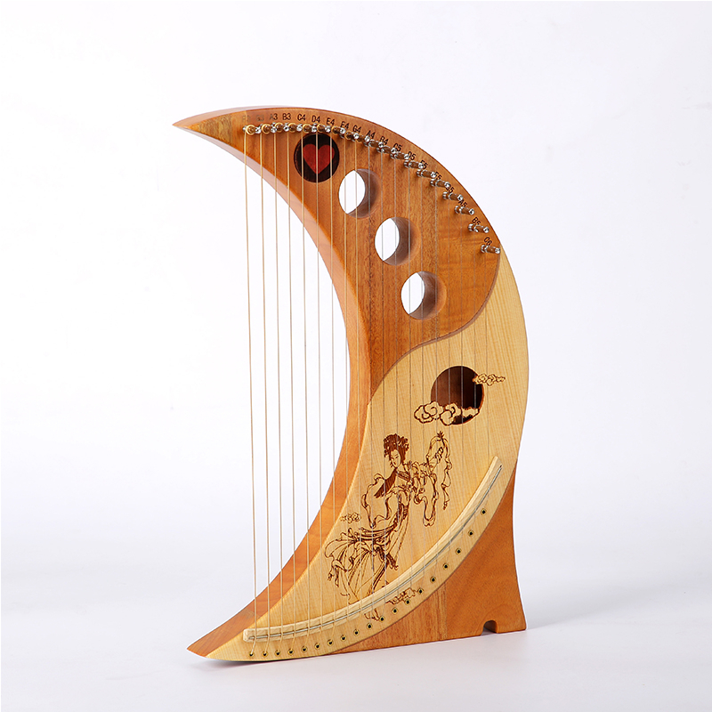 19 String Moon Lyre Mahogany Solid Wooden High Quality Portable Musical Instrument Stringed Instrument with Tuning Wrench