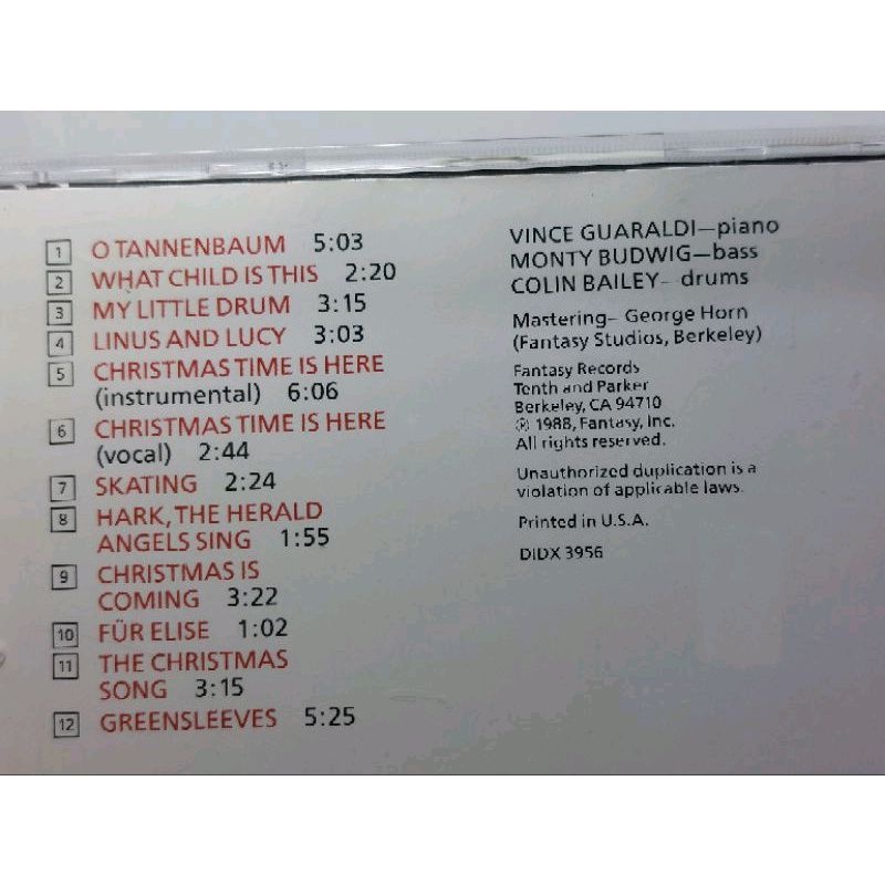 1988 A Charlie Brown Christmas Vince Guaraldi Trio Soundtrack CBS TV Collectible Music CD Album