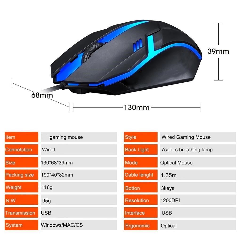 198i Wired Laser Gaming Engine 7 Color RGB Breathing LED Backlight Gaming Mouse