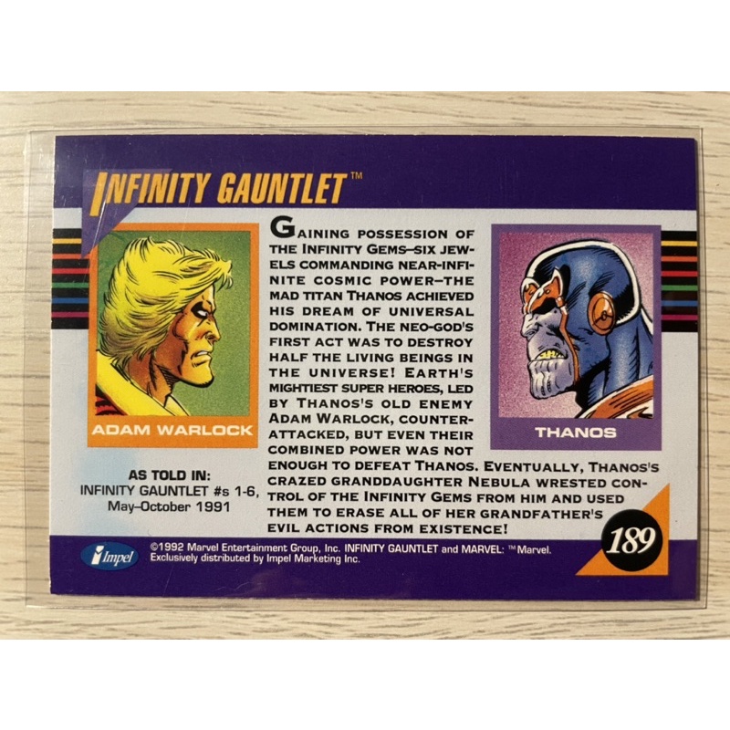 1992 Impel Marvel Universe Infinity Gauntlet Card Avengers VS Thanos Marvel Legends