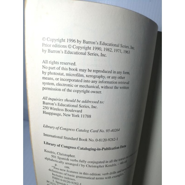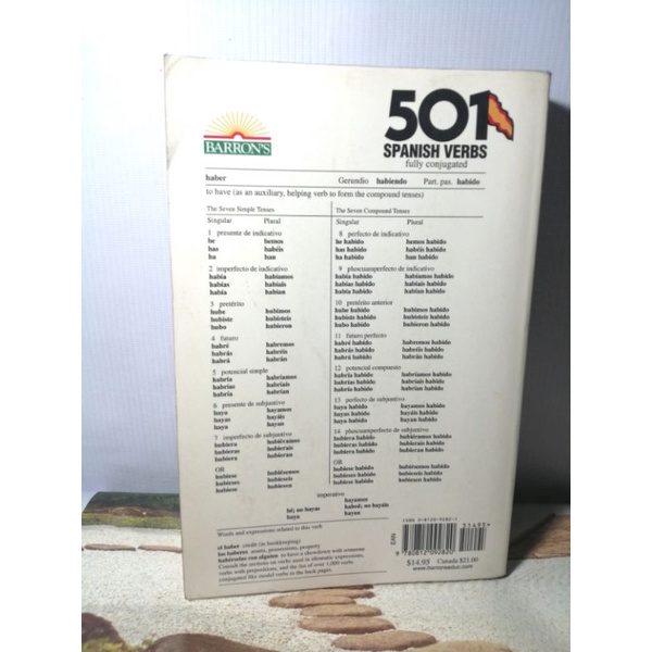 1996 BARRON'S 501 SPANISH VERBS Fully Conjugated Fourth Edition Book by Christopher Kendris, Ph.D.
