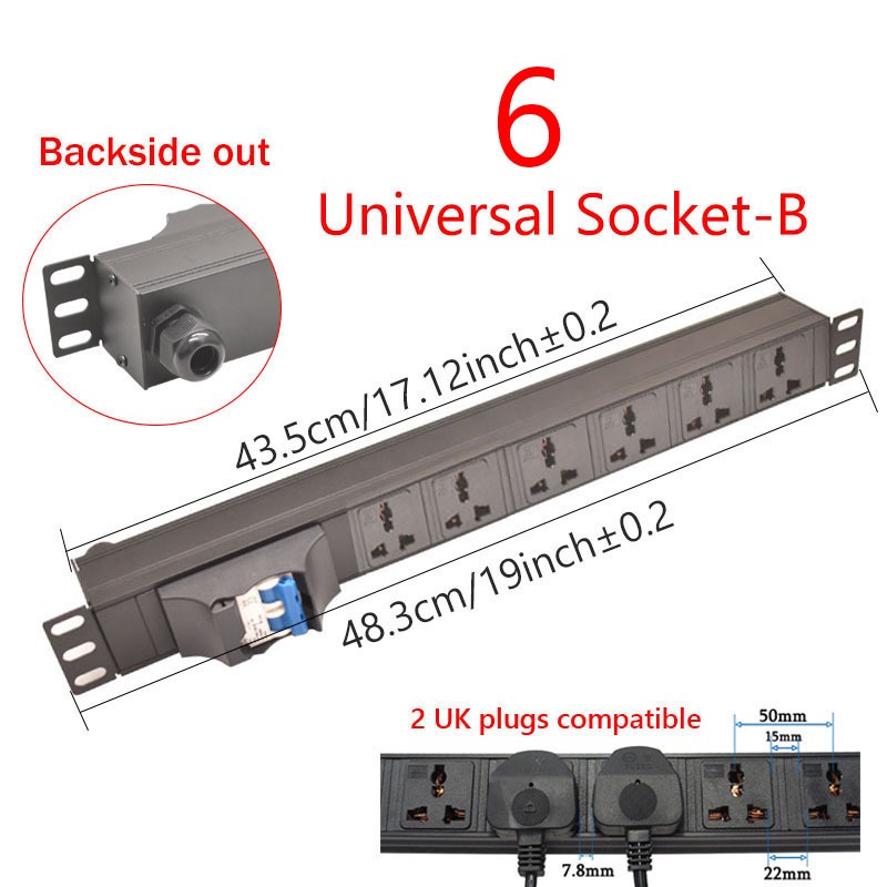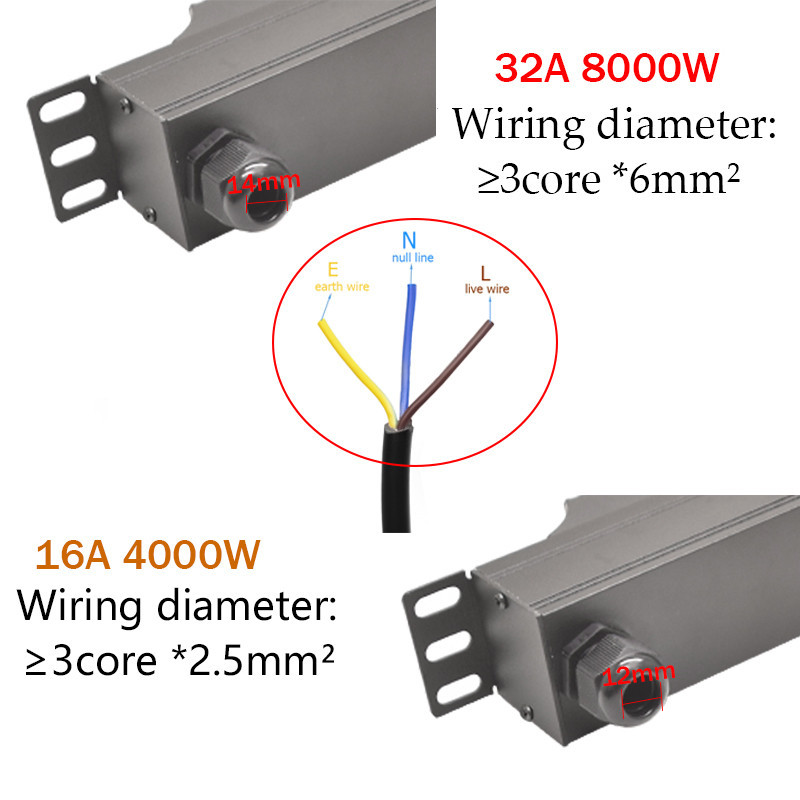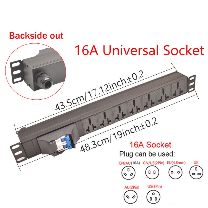 19Inch Cabinet Rack Mount PDU Power Strip EU/US/UK C13/Universal Outlet Backside out 16/32A 4000/8000W,Without wires