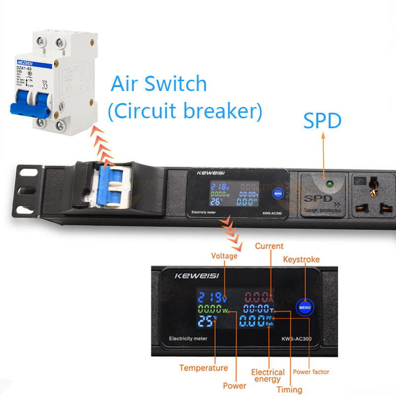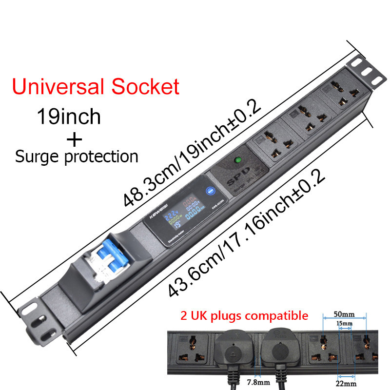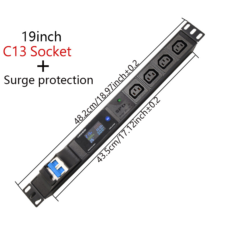 19Inch Cabinet Rack PDU Power Strip Digital Voltmeter Ammeter Wattmeter EU/US/UK C13/Universal Outlet Surge protection 16/32A 4000/8000W