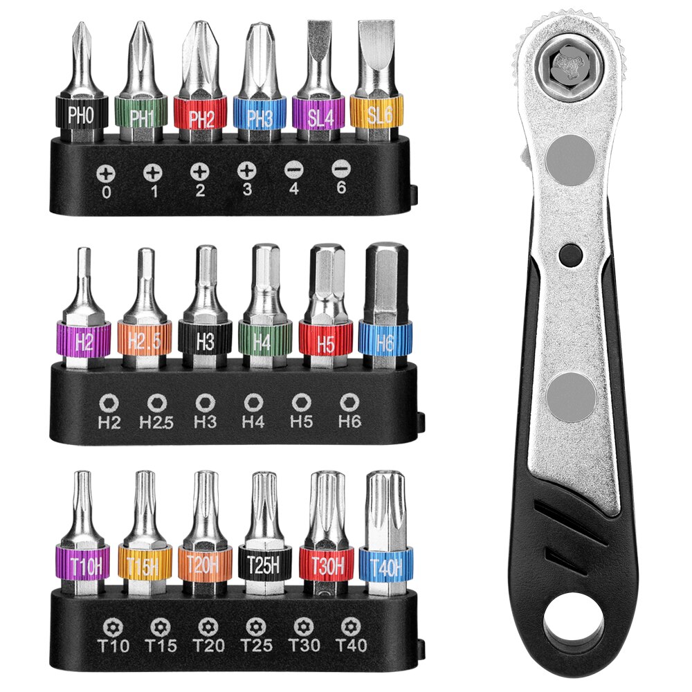 19PC 1/4" Ratchet Wrench And Screwdriver Bit Set Slotted Phillips Hex Torx Bits Mini Rachet Spanner And Screw Driver Bit Kit