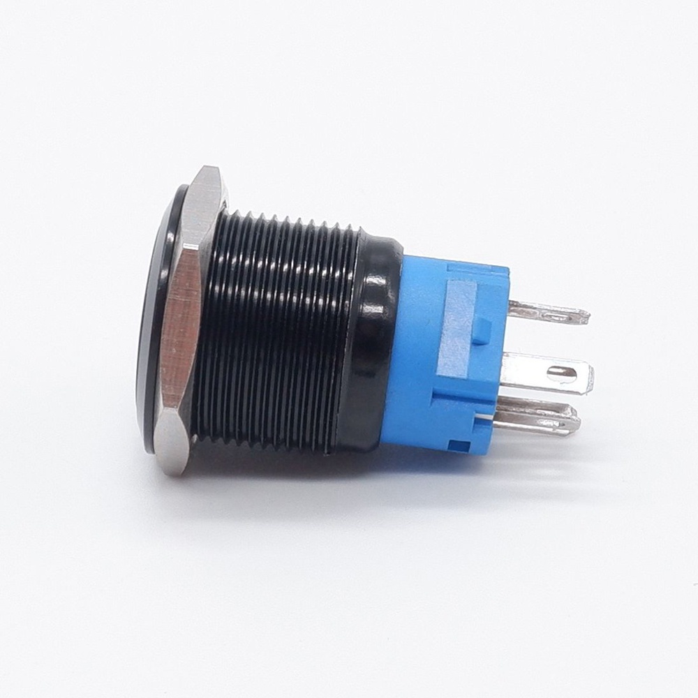 19mm Black Push Button Switch Led Light Waterproof Illuminated Metal Flat Latching Momentary with ring light 5V 12V 220V Blue Red