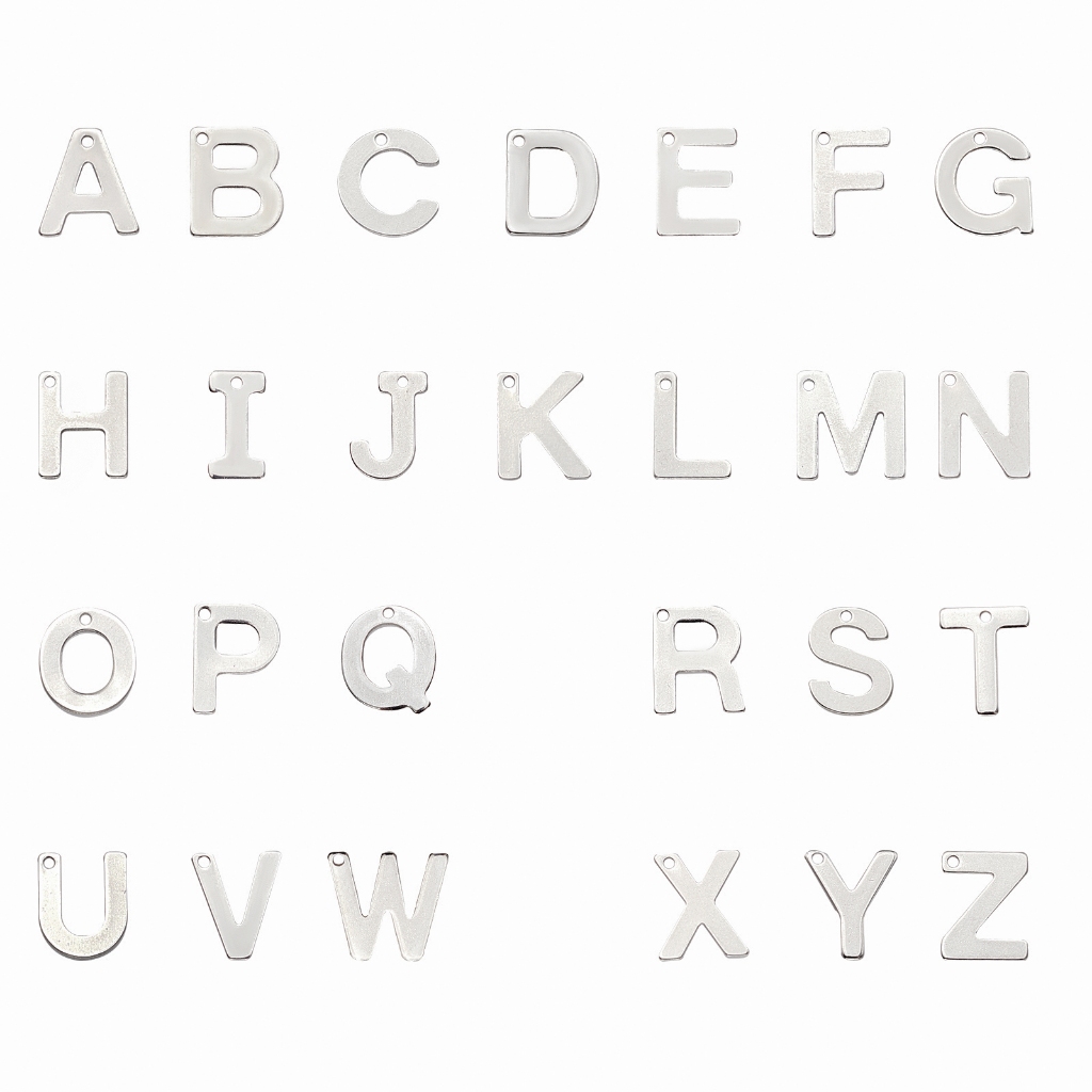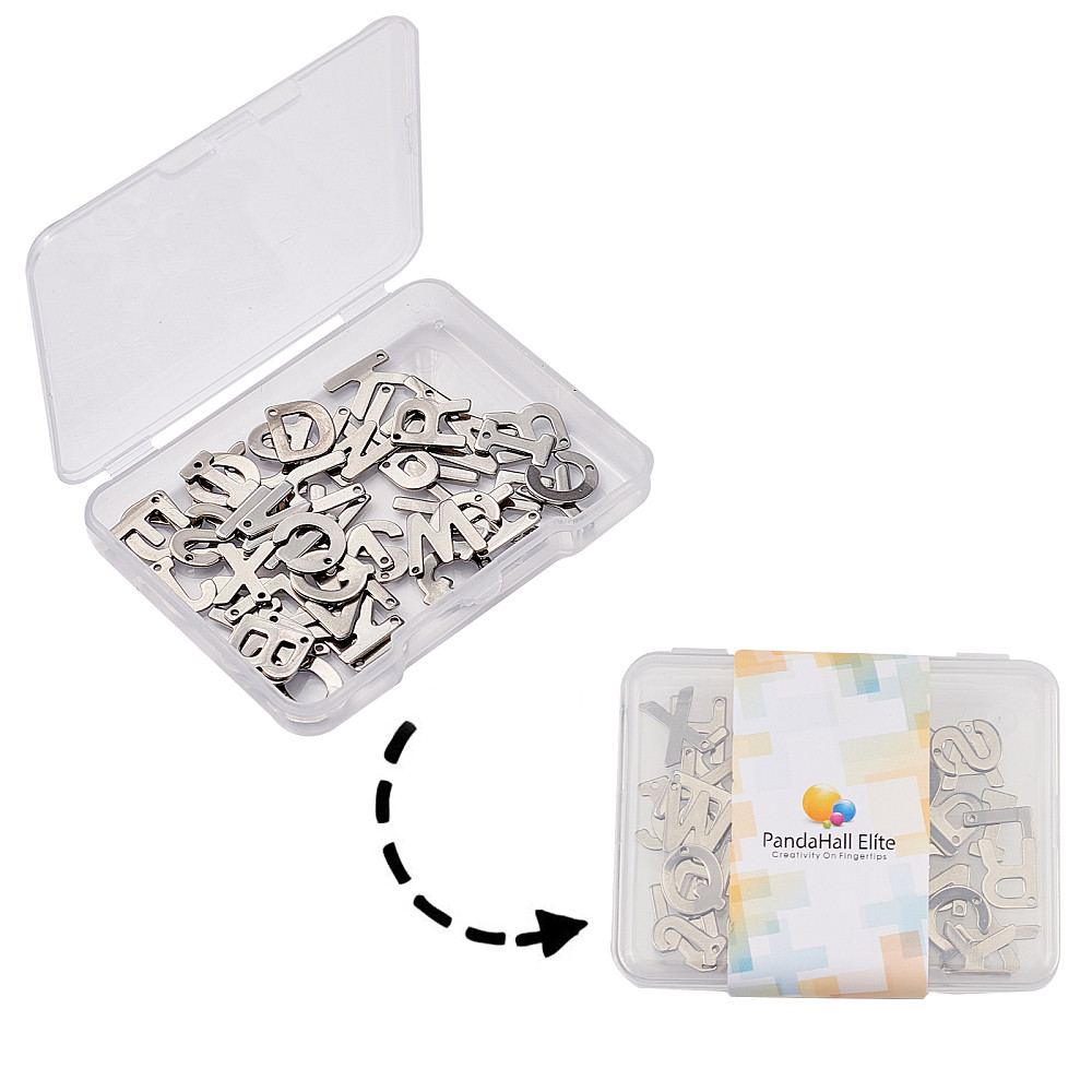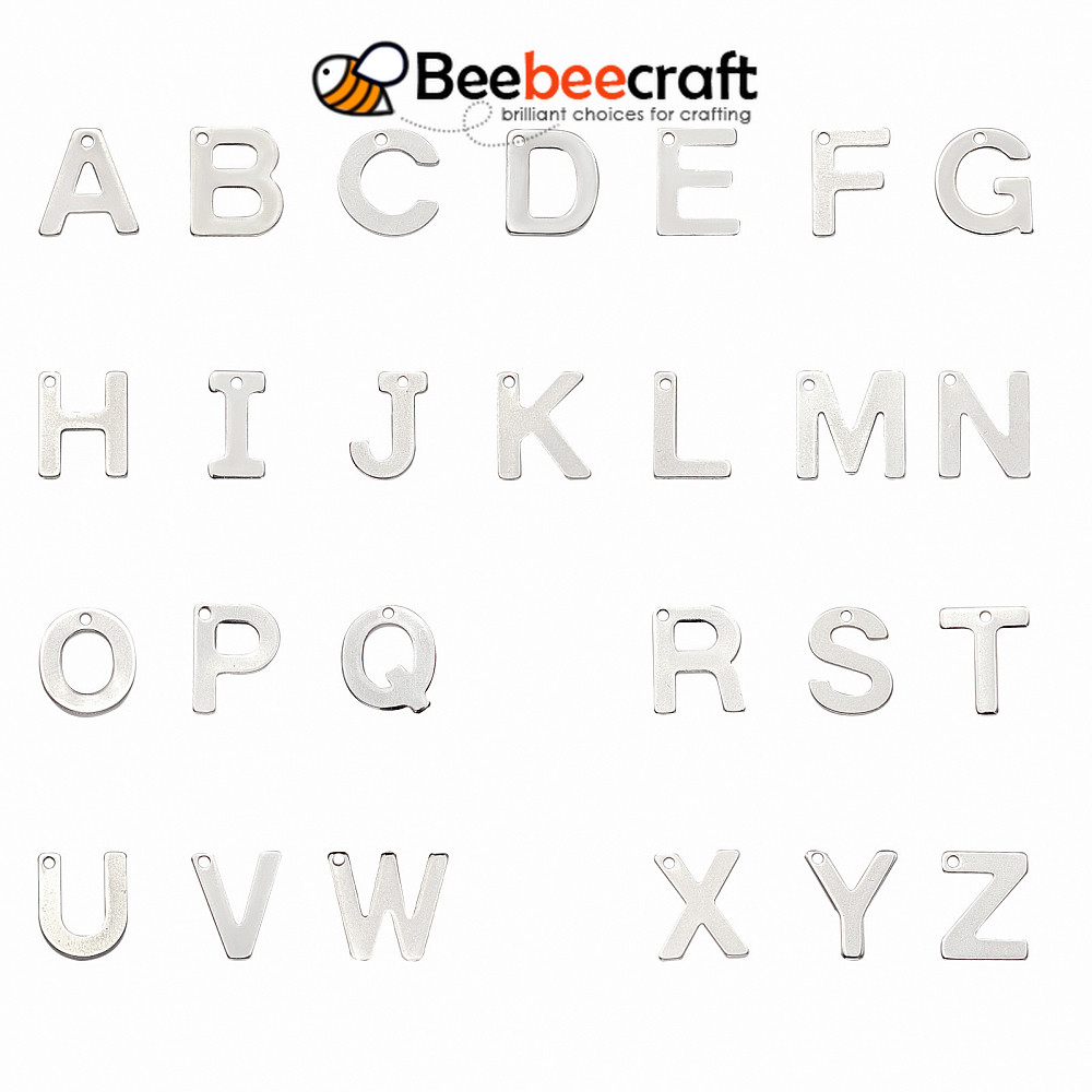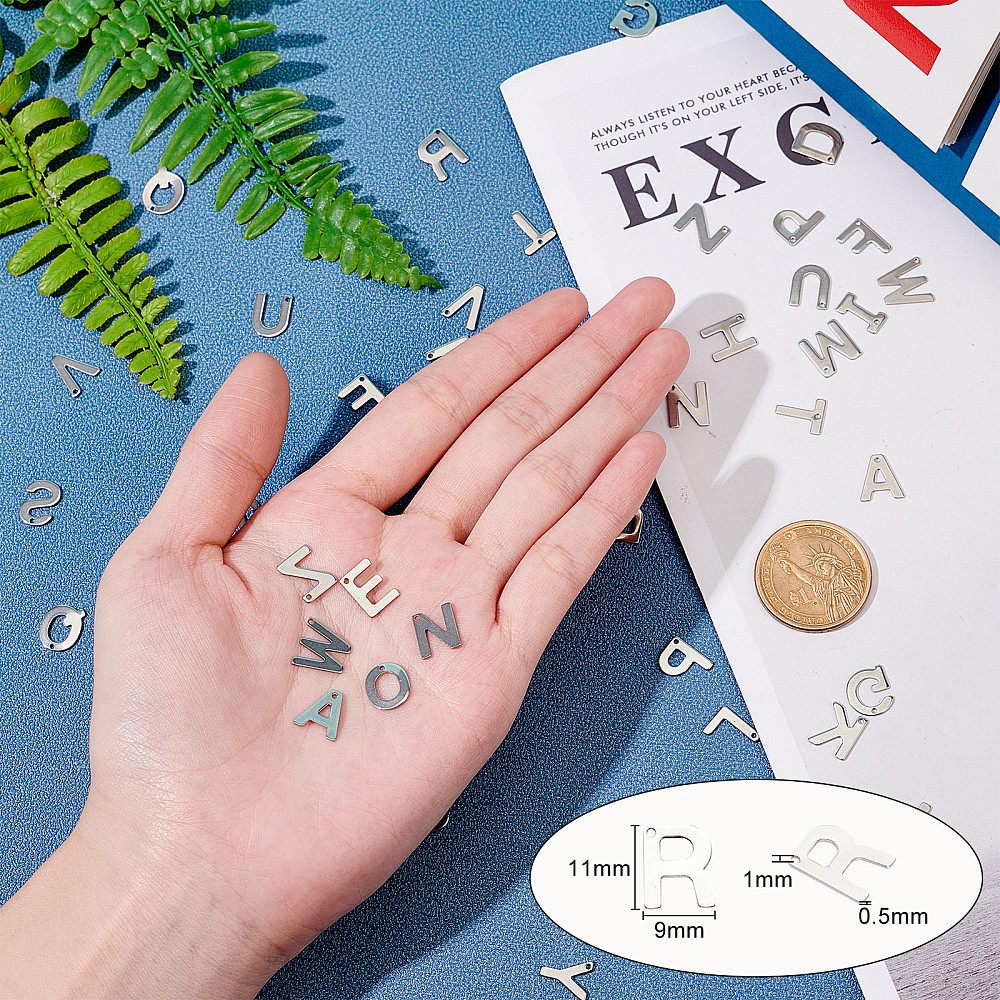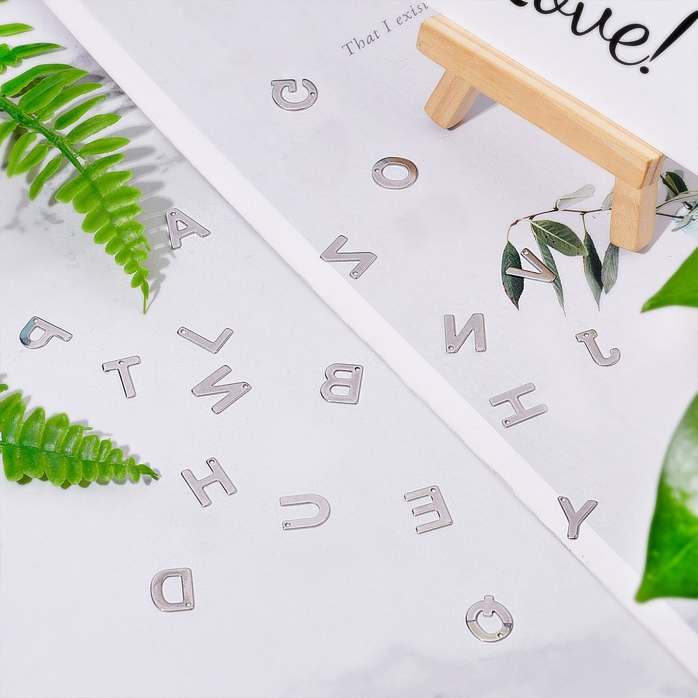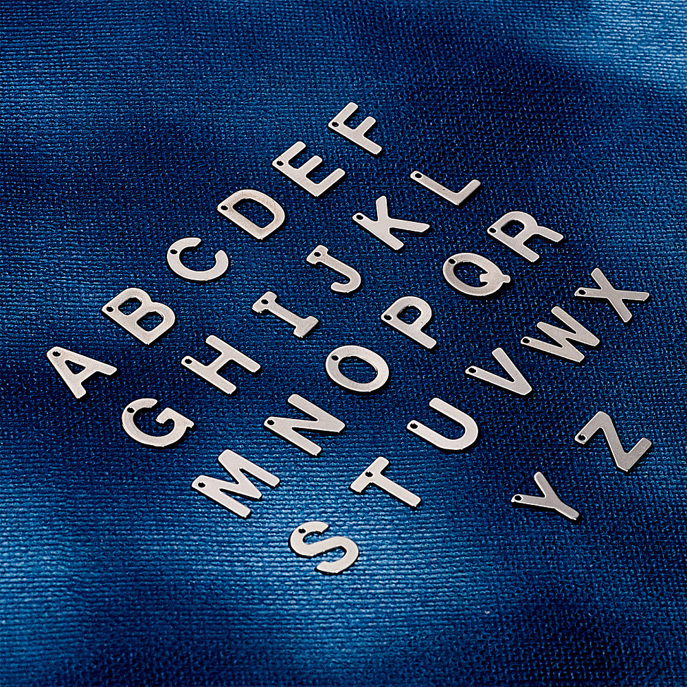 1Box 52pcs Letter A-Z Pendent Stainless Steel Letter Charms Metal Alabet Charms for Bracelet Necklace Crafts Making Stainless Steel Color