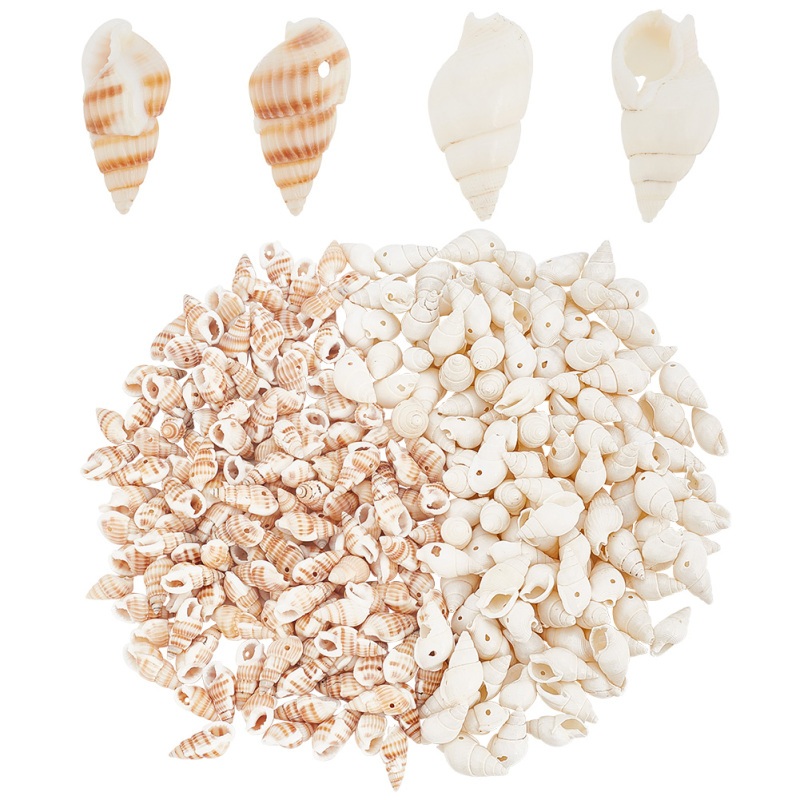 1Box PH 300pcs Seashell Beads 2 Styles Ocean Beach Spiral Shells Craft Sea Shells Charms with 1mm Hole for Summer Jewellery Bracelet Necklace Making Party Wedding Decor 4 Strands