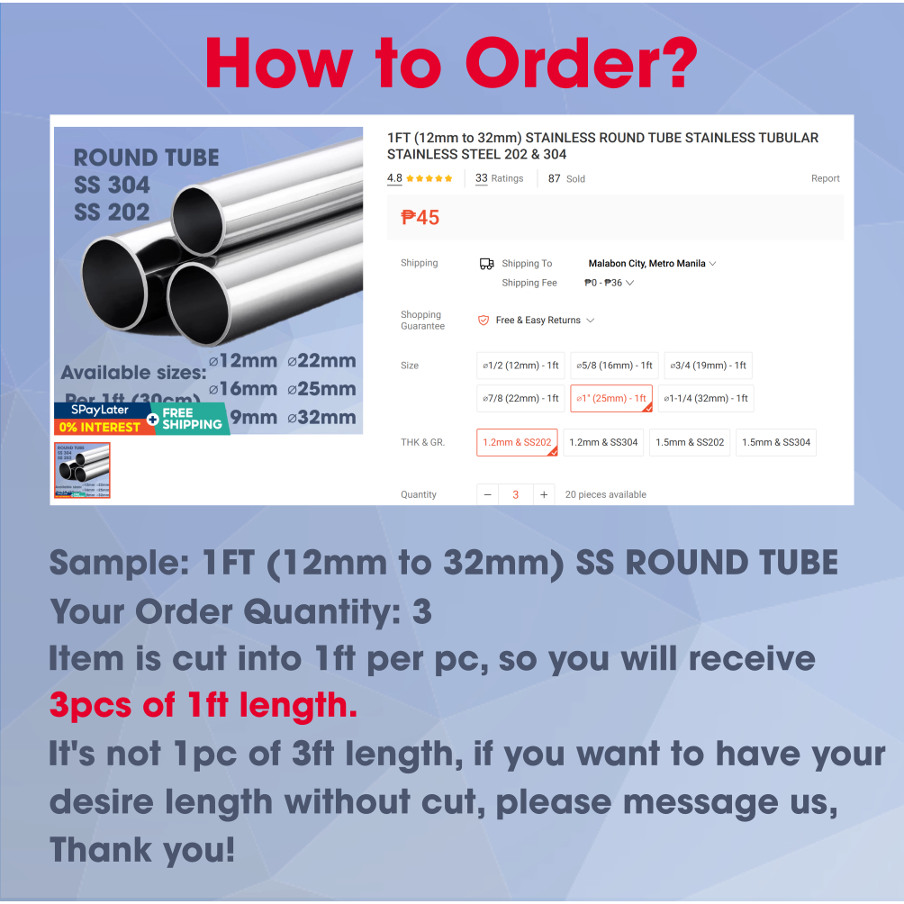 30cm or 1FT long (est. 19.3mm, 22.4mm, 25.4mm) STAINLESS SHAFTING/ SOLID ROUND BAR ss202 ss304