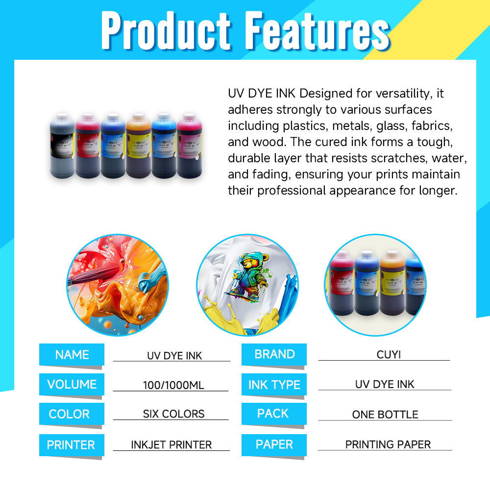 1L Cuyi UV Dye Ink For All Inkjet Printers Universal dye ink 6 Color