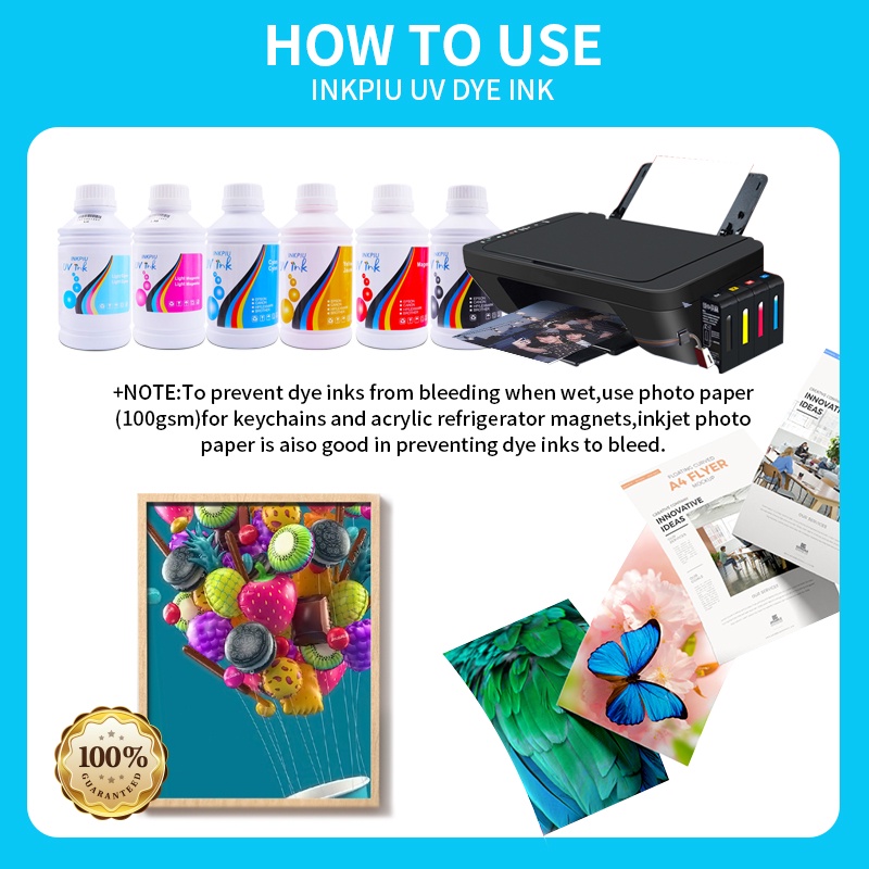 1L Inkpiu UV Dye Ink Universal Dye Ink For ALL Type Of Printers ( Black / Yellow / Cyan / Magenta )