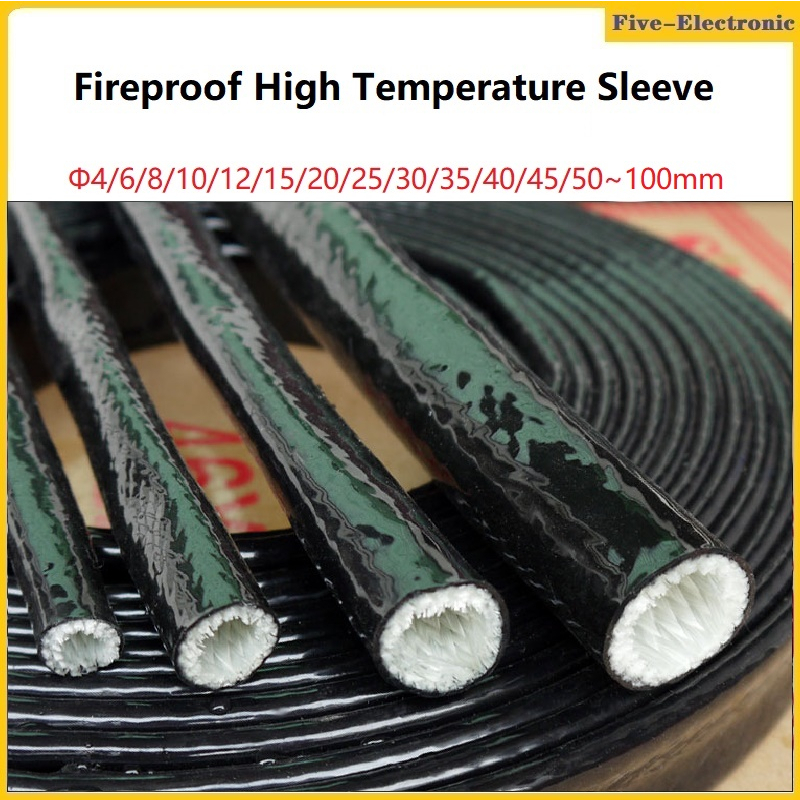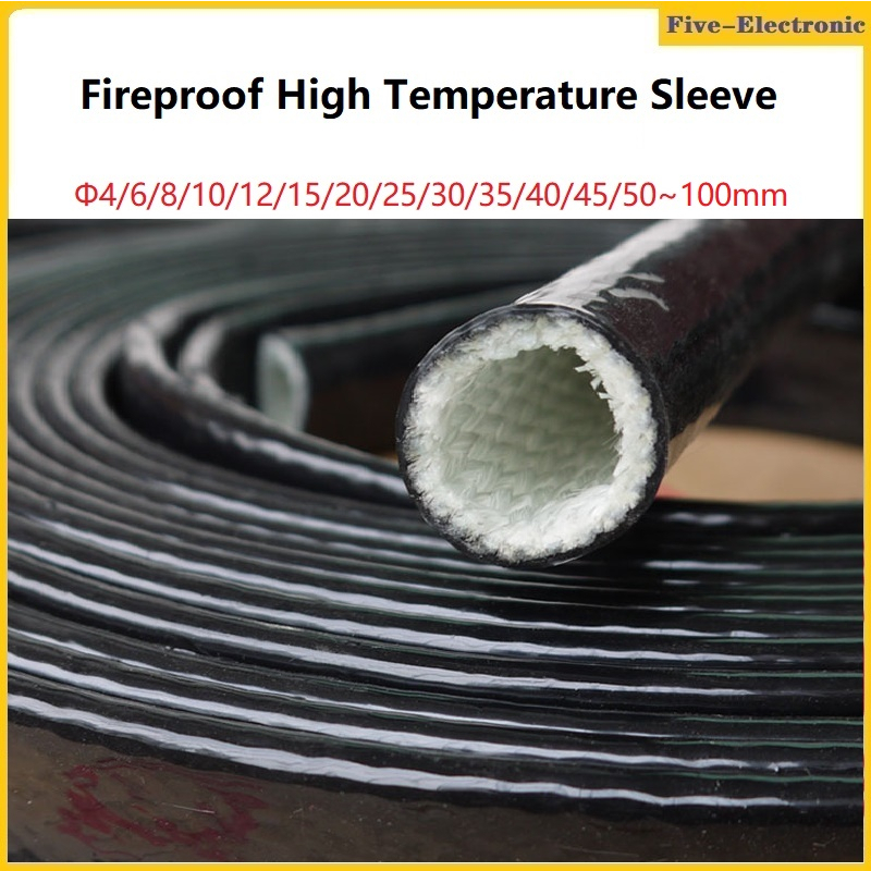 1Meter Diameter 4mm~30mm Fireproof High Temperature Casing Silicone Rubber Fiberglass Sleeve For Cable Insulation Protection Black