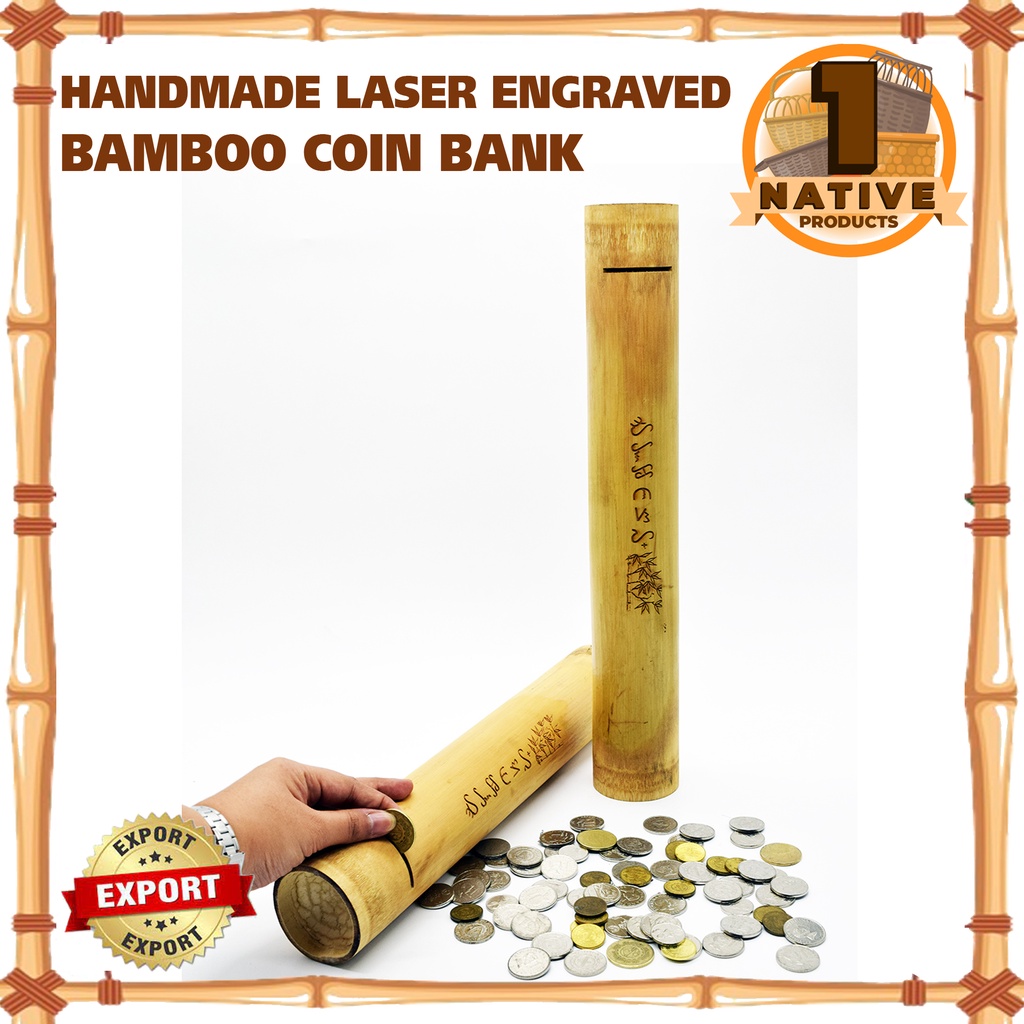 1NativeProducts Bamboo Coin Bank -1 piece14 - 15 Inches Height Handmade Native Bamboo Money Saving