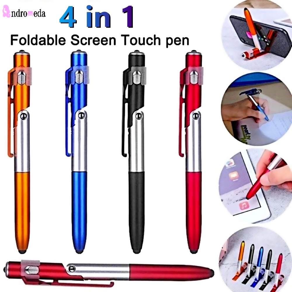 1PC 4 In1 Multipurpose Folding Mobile Phone Holder Ballpoint Pen / LED Light Pens Writing Tool Office Supply