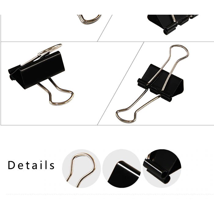1PC Black Metal Binder Clips Notes Letter Paper Clip School and Office Supplies 41/51mm