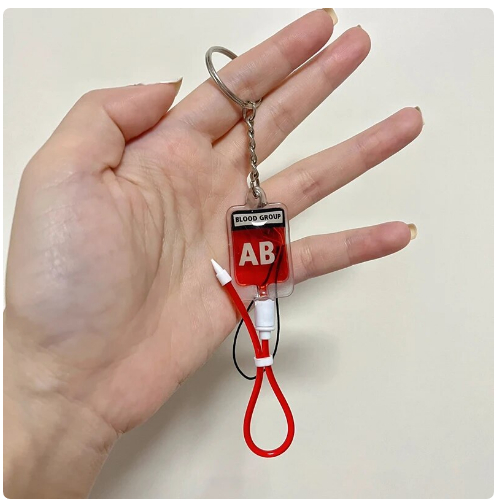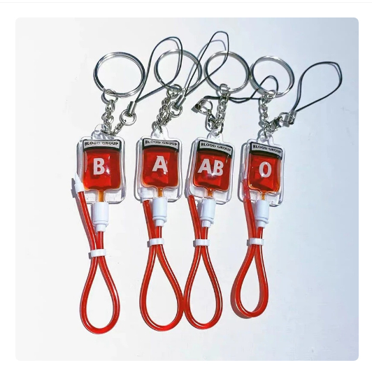 2PCS lood Type A B O AB Plasma Pack Blood Bag PVC Pendant DIY Jewelry Making Gift Charm Keychain