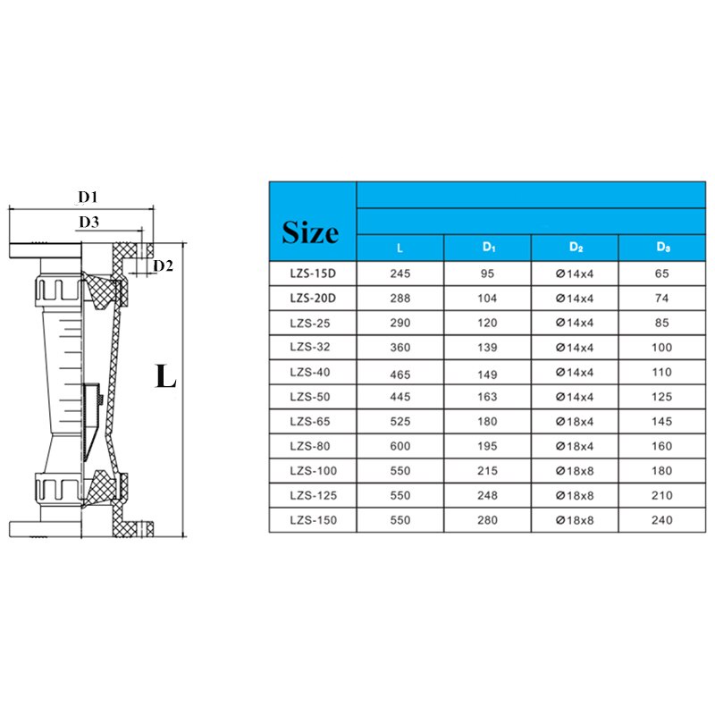 1PC DN80 DN100 DN125 DN150 PVC plastic Flange type rotameter Water Treatment Pipeline FlowmeterLiquid Water Flow Meter Rotameter