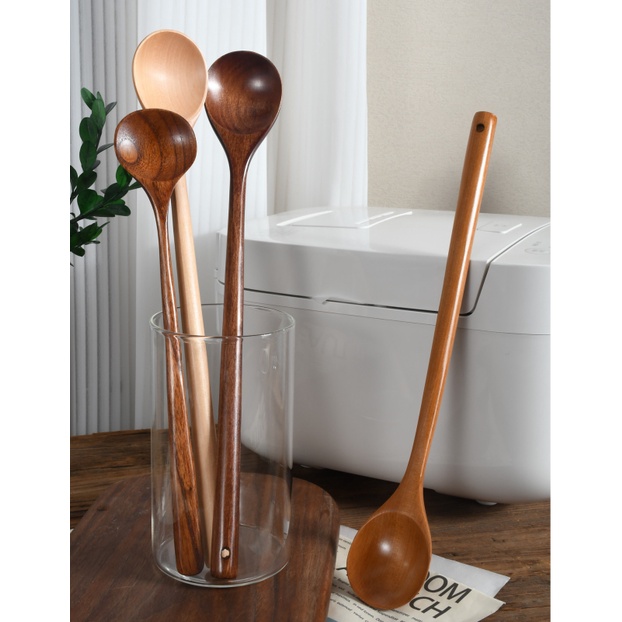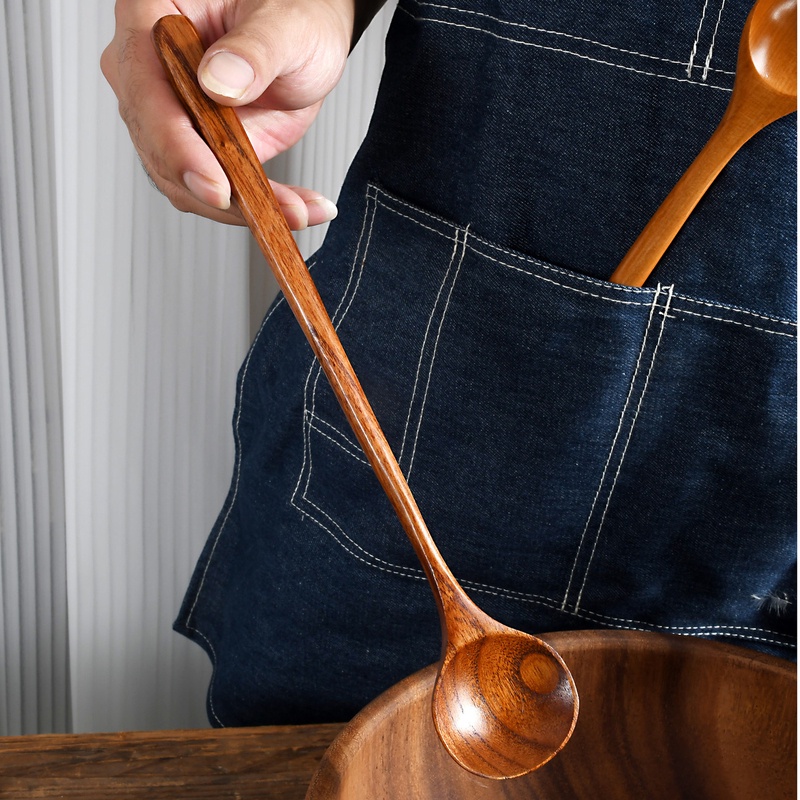 1PC Hot Pot Long Handle Wooden Tableware Spoons Noodles Mixing Stirring Dessert Honey Spoon Stirrer Cookware