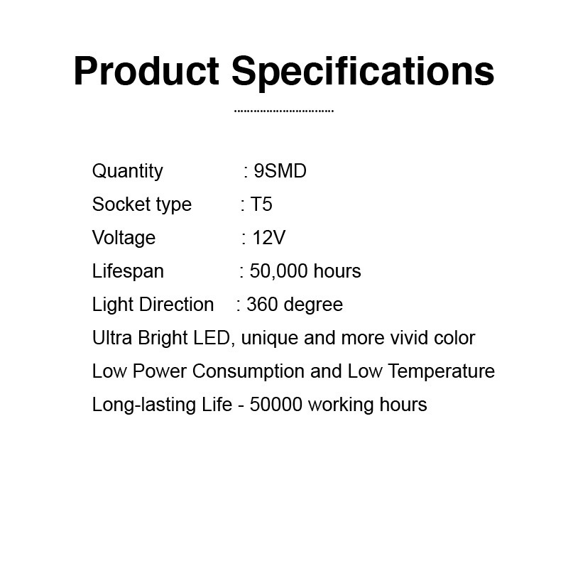 1PC Meter Light Bulb 9LED T5/W3W t10 Super Bright Car Interior Lamp Instrument Dashboard