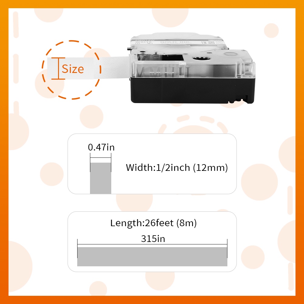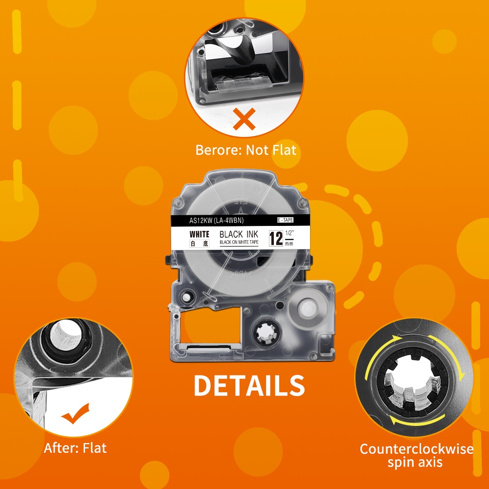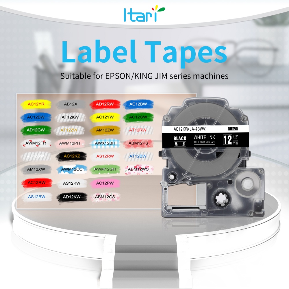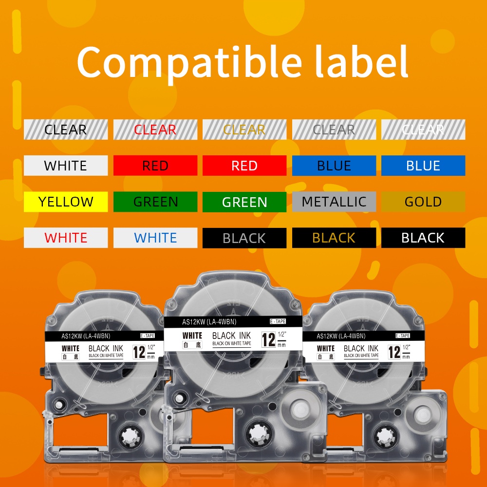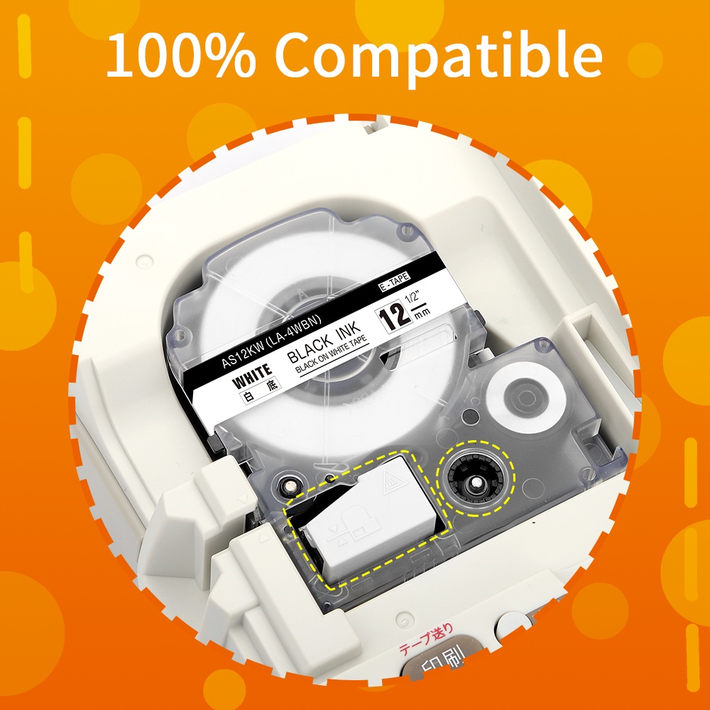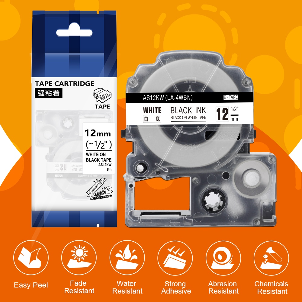 1PC SS12KW Compatible Label Tape for LK-4WBN LC-4WBN LC 4WBN9 SS12KW 12mm Cartridge for Epson LabelWorks LW-300 400 Label Maker for School Office