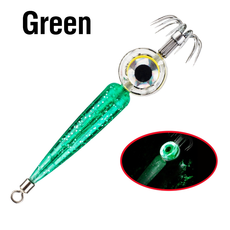 1PC Squid Jig Hooks Deep Sea LED Light 4 Color Led Squid Bait Hook Eye Shape Glowing Fishing Hooks Light Waterproof Lure Lamp