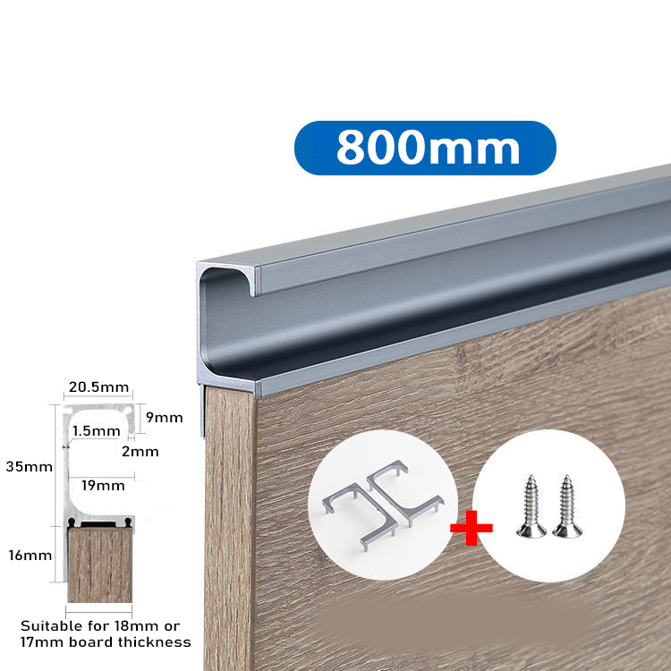 1PCS 600mm 700mm 800mm Long Aluminum alloy Hidden Kitchen Cabinet Handle Furniture Wardrobe Cabinet Drawer Pull Handle Long Concealed Furniture Closet Door Handle