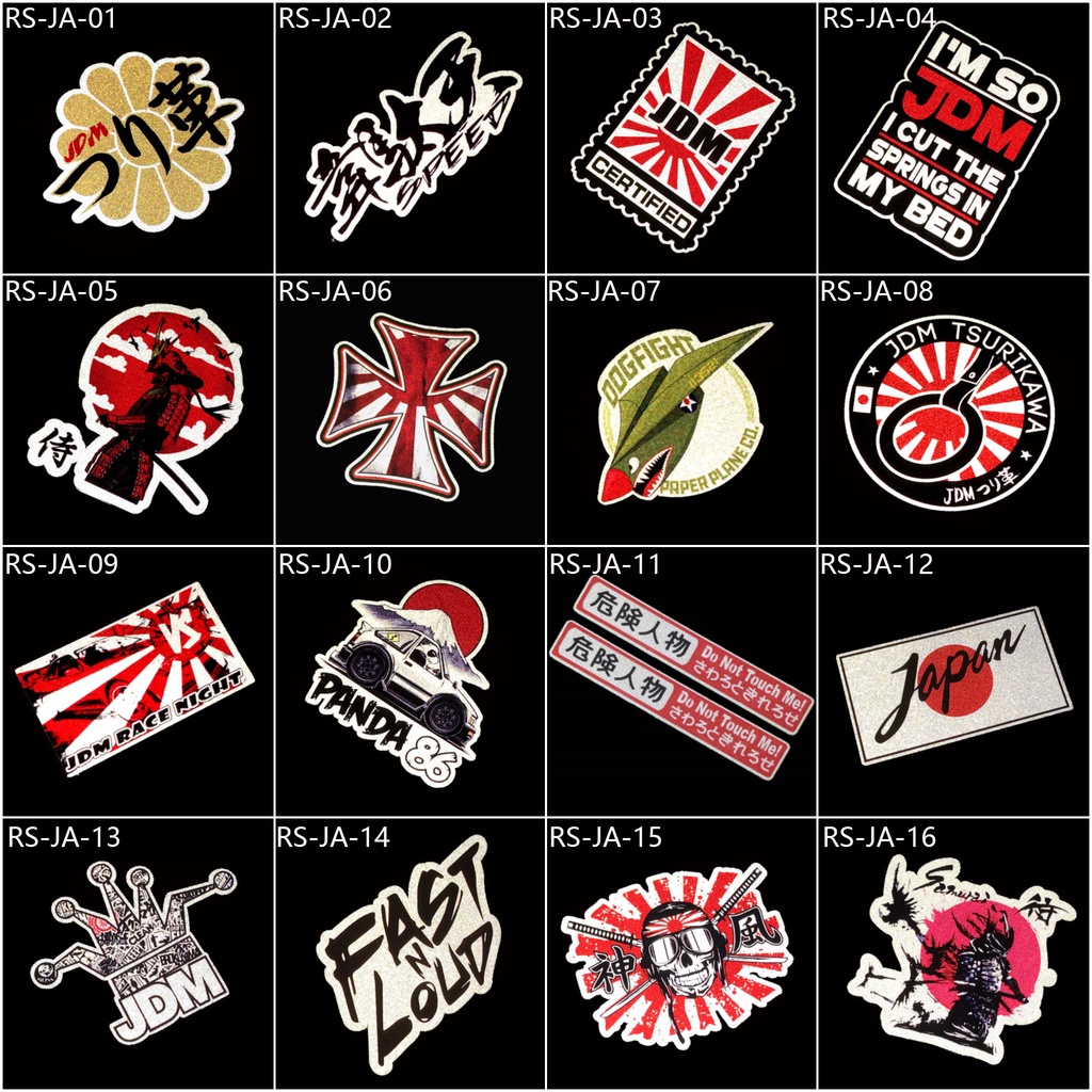 1PCS JDM 2021 Reflective Fashionable Car Decals Japanese Motorcycle Stickers Helmet Decoration(50 Styles Are Available )