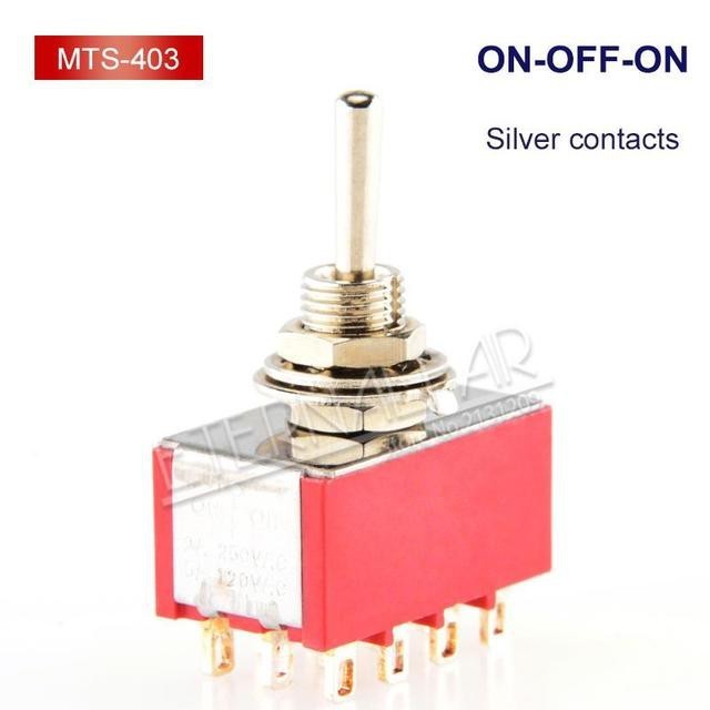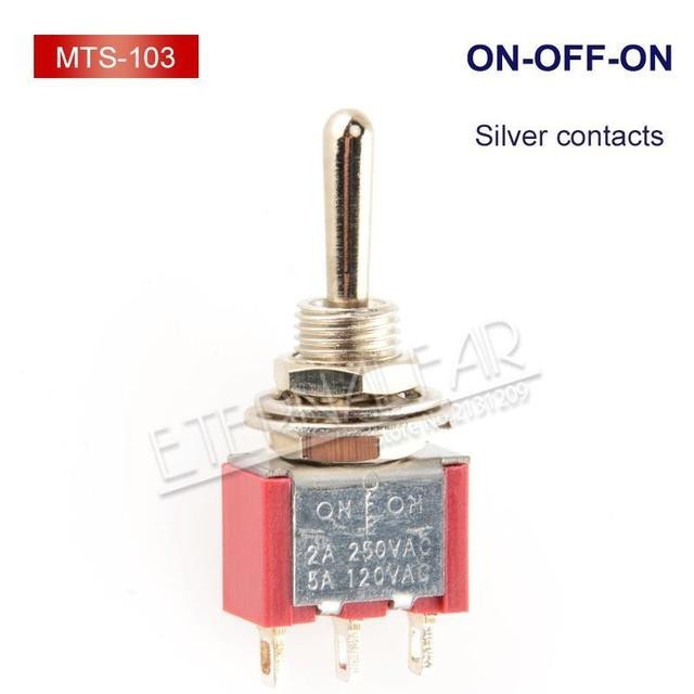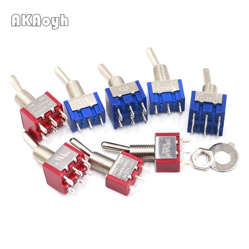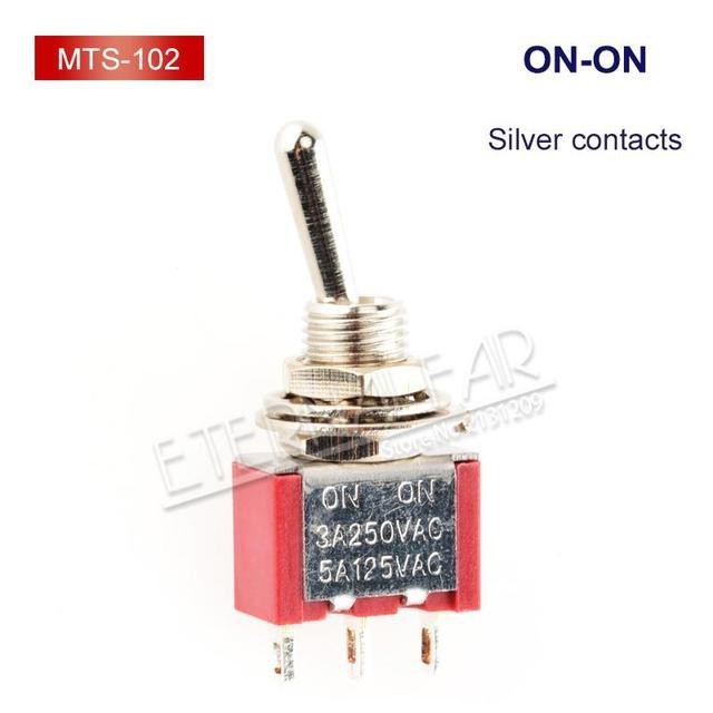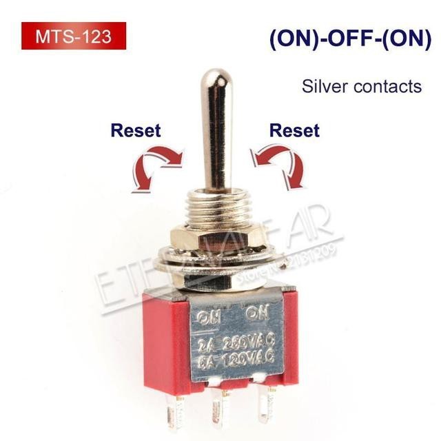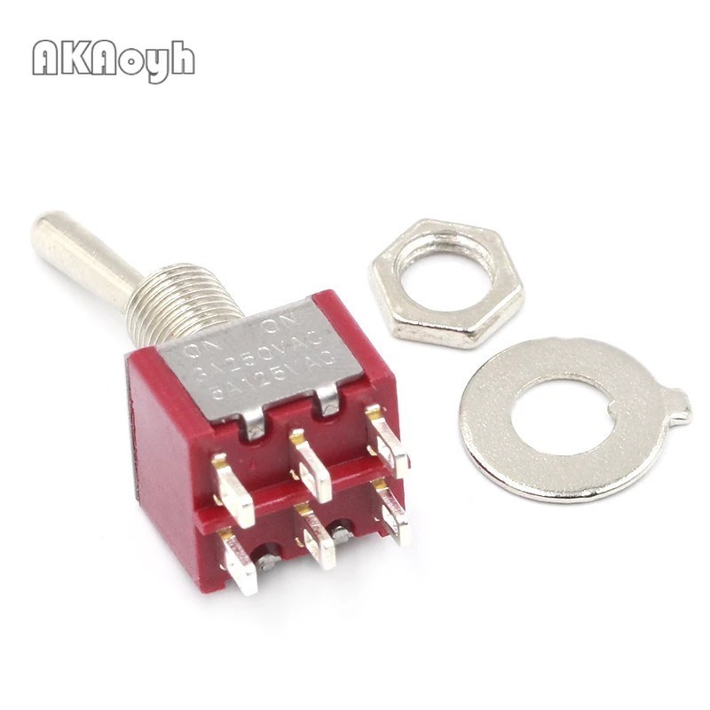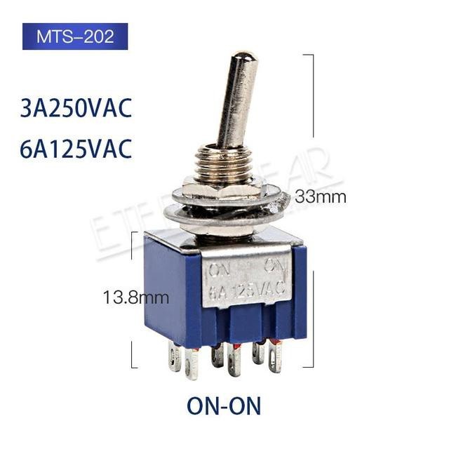 1PCS/LOT SPDT DPDT 6MM Reset Latching Toggle Switch MTS-102 5A 6A 125V 3A 250 AC Mini 3 6PIN ON-ON ON-OFF-ON Rocker Switch Lights Motors