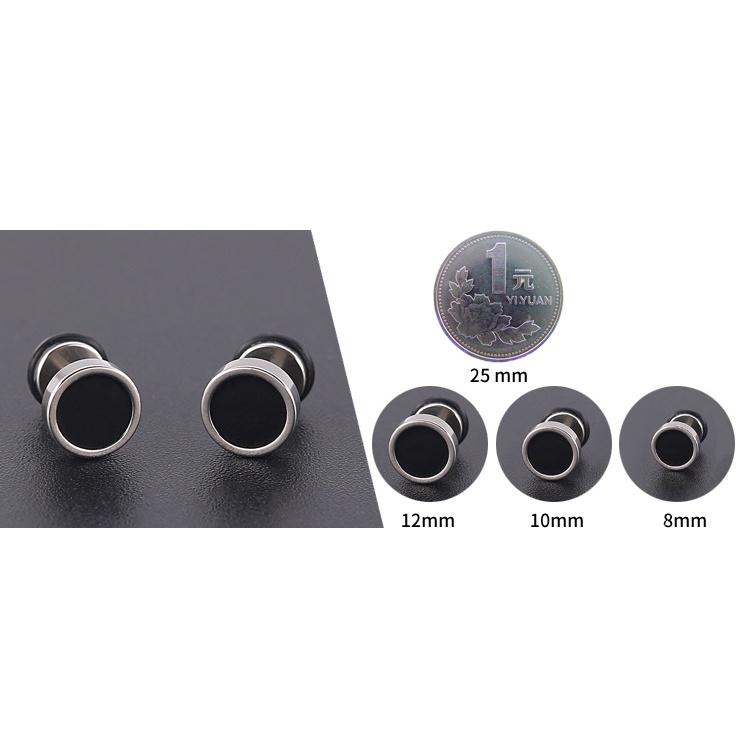 1PCS Men's Earings Titanium Steel Round Black Oil Drip Stud Earrings For Men Korean Fashion Stainless Steel Punk Jewelry KBE455