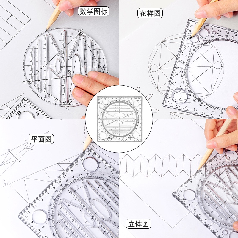 1PCS Multifunctional Universal Ruler Rotatable Ruler Set Math Circle Ellipse Template Exam Triangle Parallel Ruler