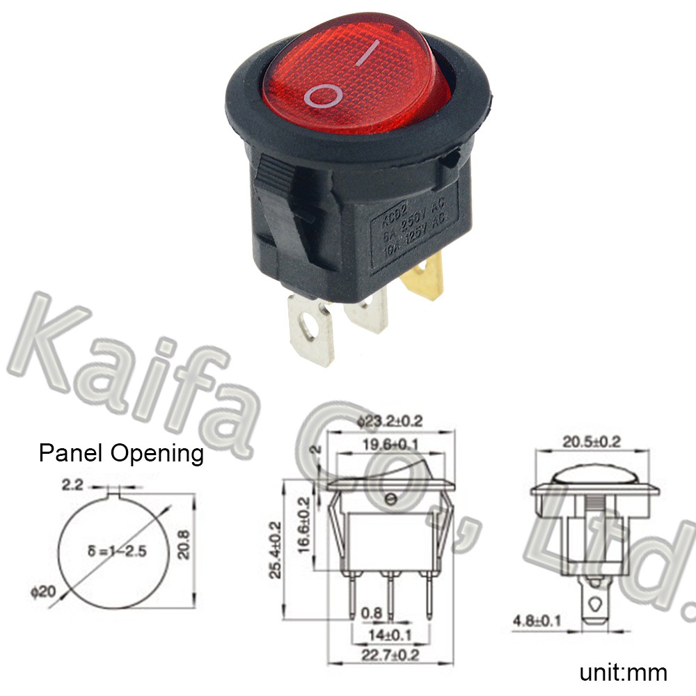 1PCS ON/OFF Round Rocker Toggle Switch 6A/250VAC 20A/12VDC Plastic Push Button Switch Panel Opening 20mm Power switch button