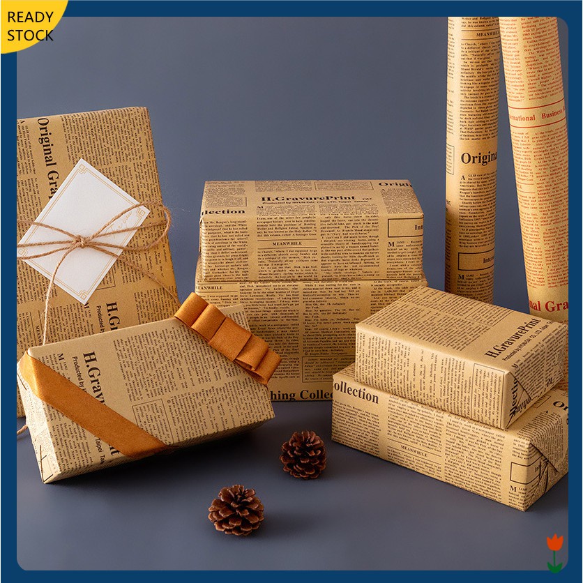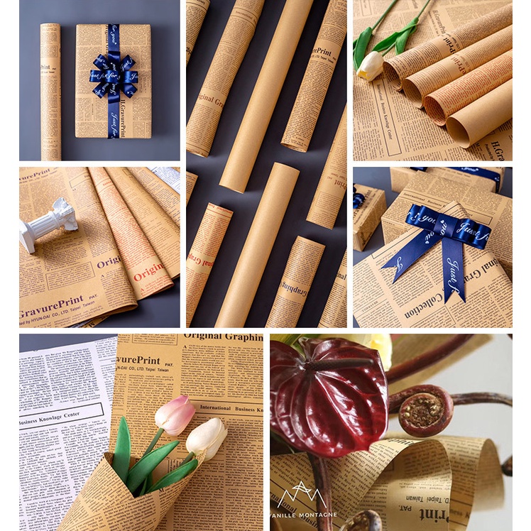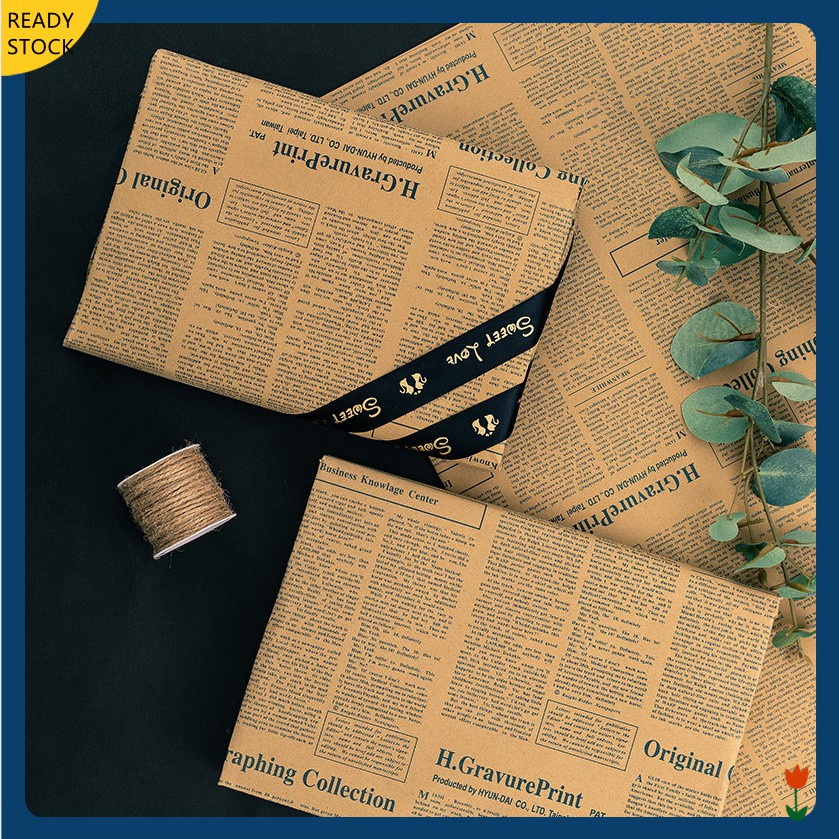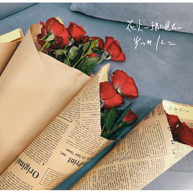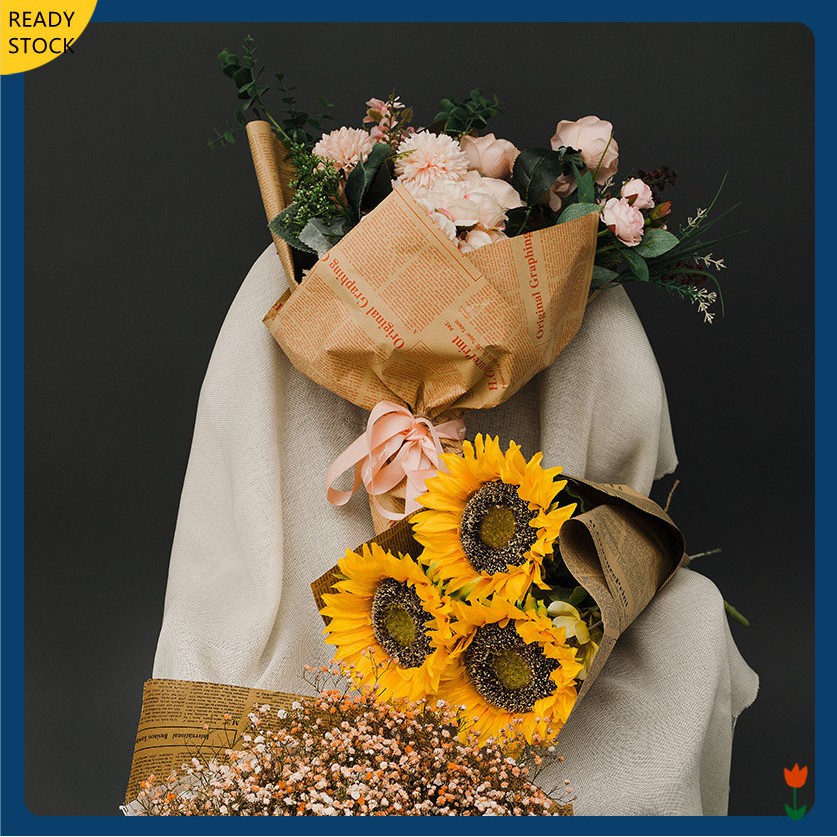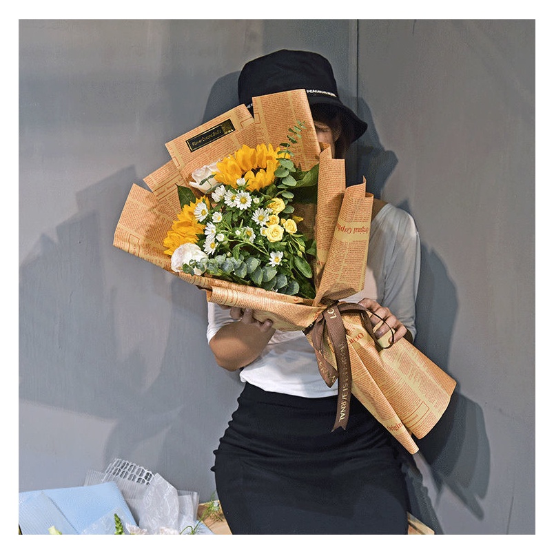 1PCS/Pack English newspaper bouquet wrapping paper Kraft Sunflower Wrapped Floral Paper