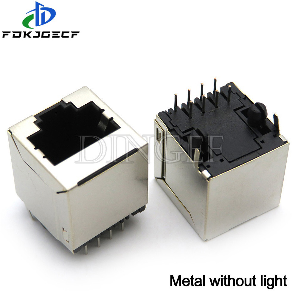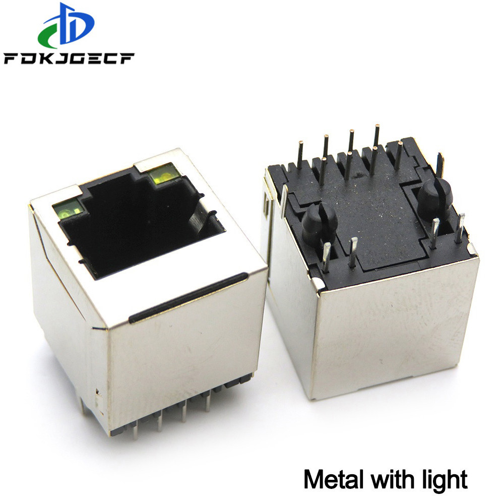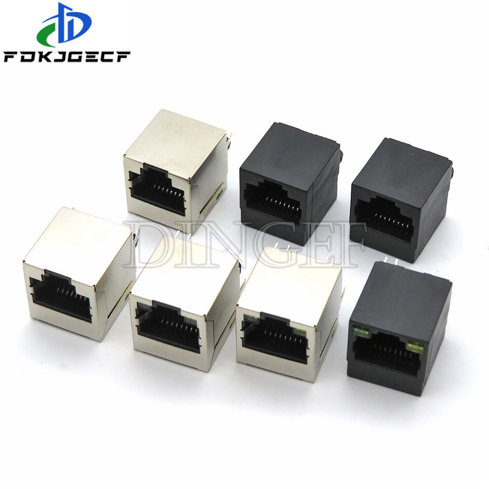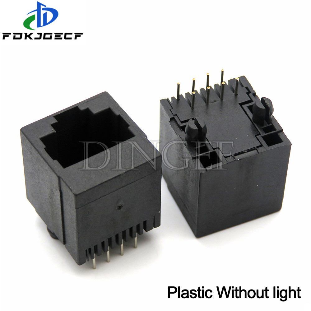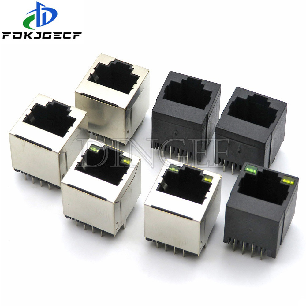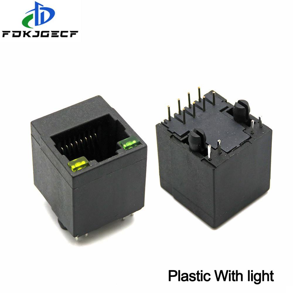 1PCS RJ45 Vertical 5224 8P8C Female Network socket Interface Crystal Head Socket 180 degrees Connector Plastic/metal with light