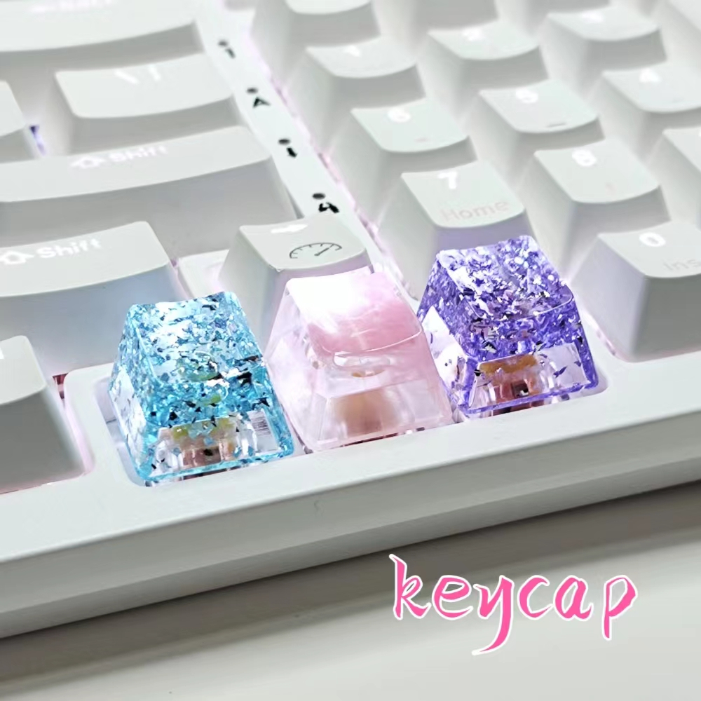 1PCS Resin Keycap Mechanical Keyboard Unique Light Translucent Pink Handmade Customization