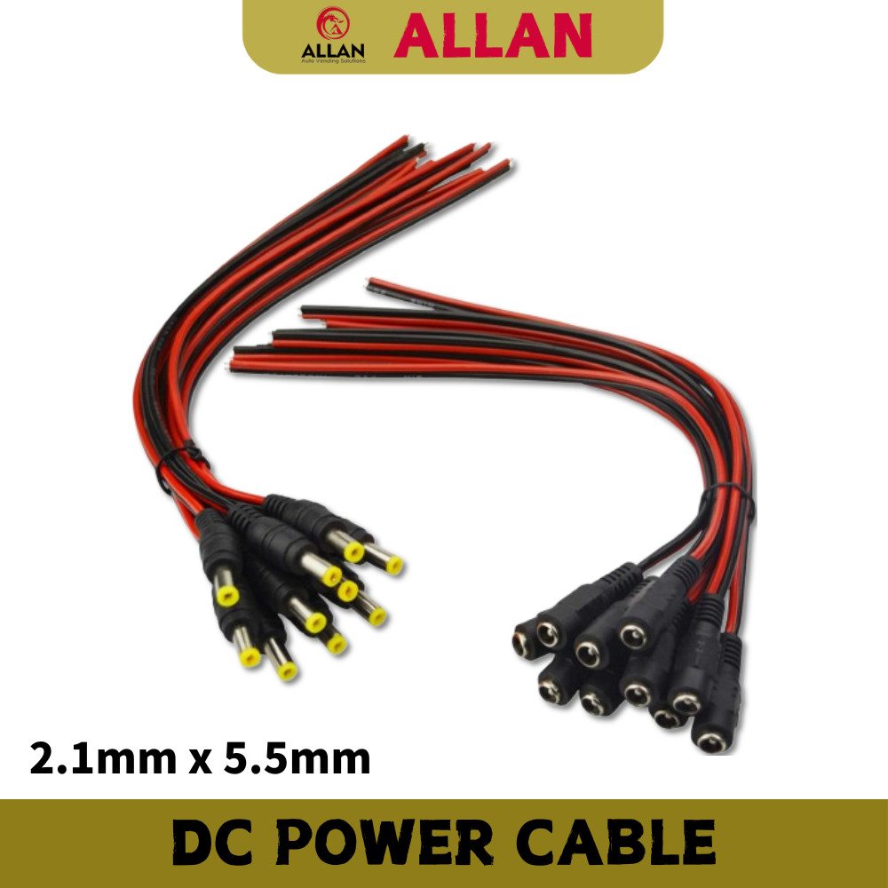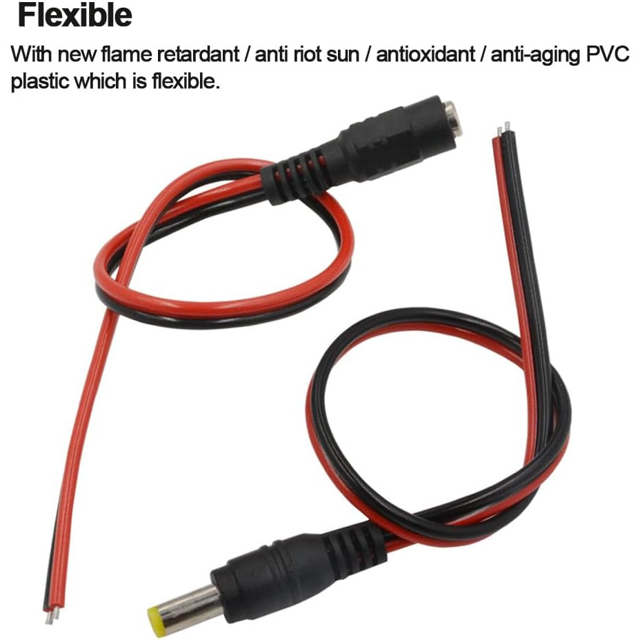 1Pair 12V 5A DC Power Pigtail Barrel Plug Connector Cable 2.1mm x 5.5mm Male Female