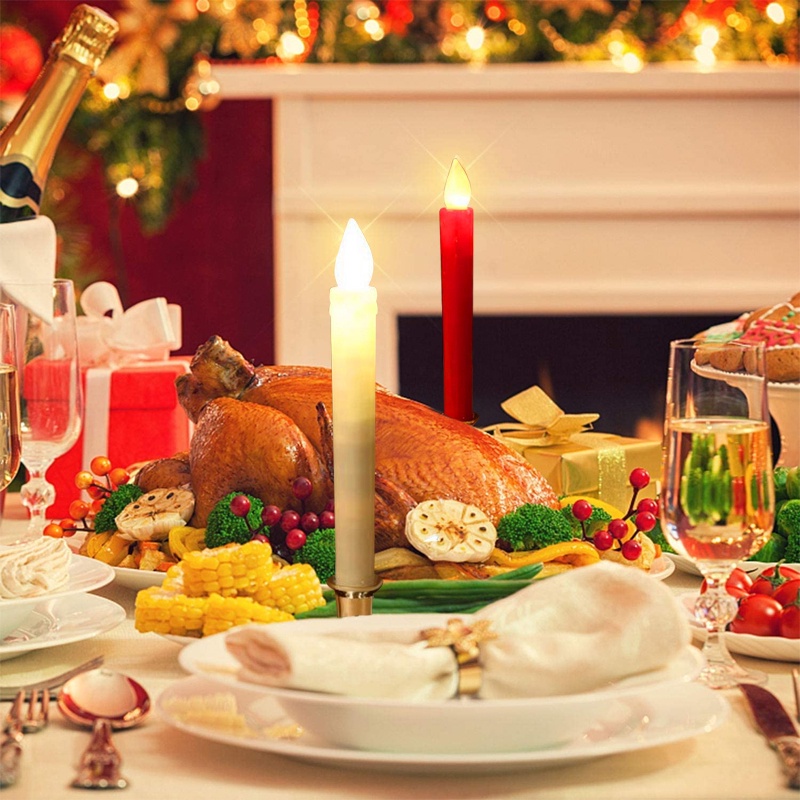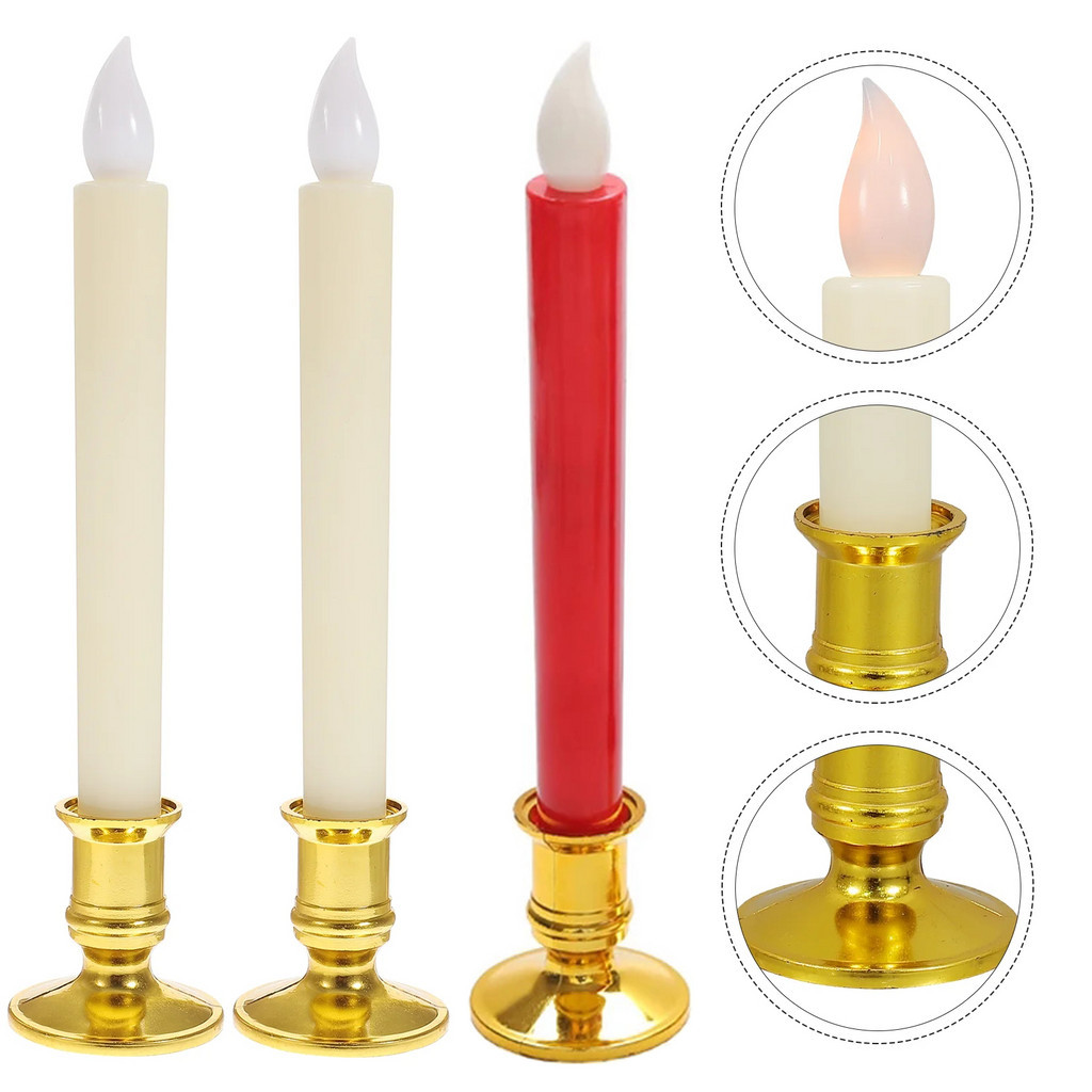 1Pair Long Pole Electric LED Candle Lights with Removable Bases/Flameless Long Candle Lamp