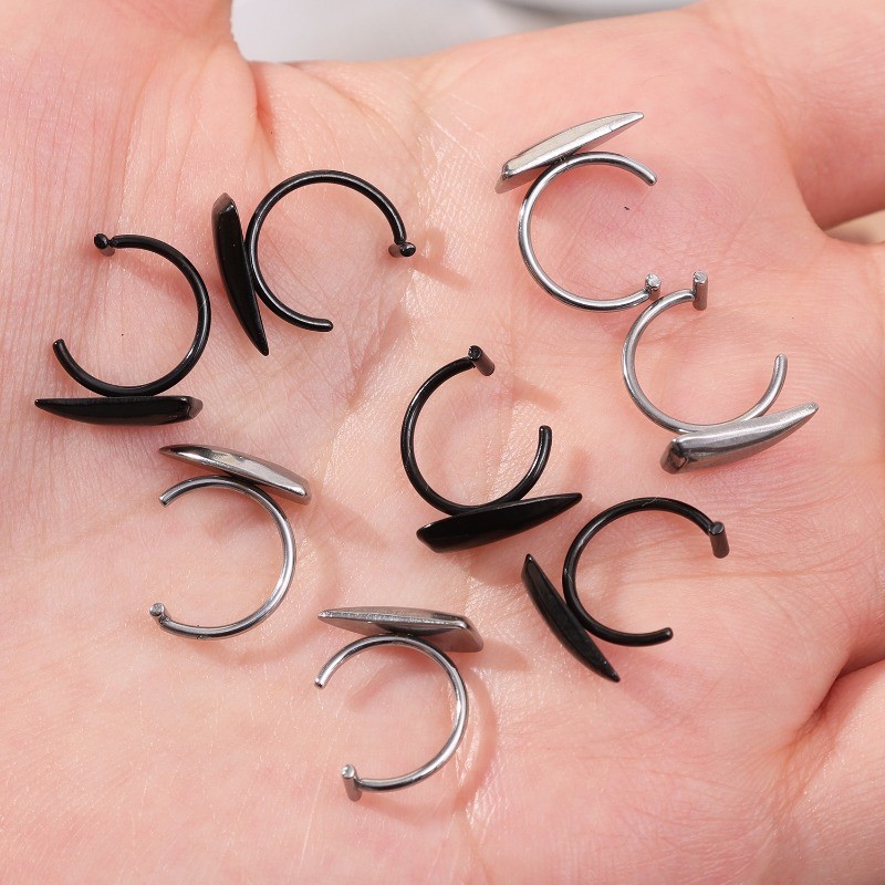 1Pair Personalised Punk Stainless Steel Sharp Teeth Design Lip Ring Gothic Exaggerated Fake Piercing Lip Clip Body Jewelry