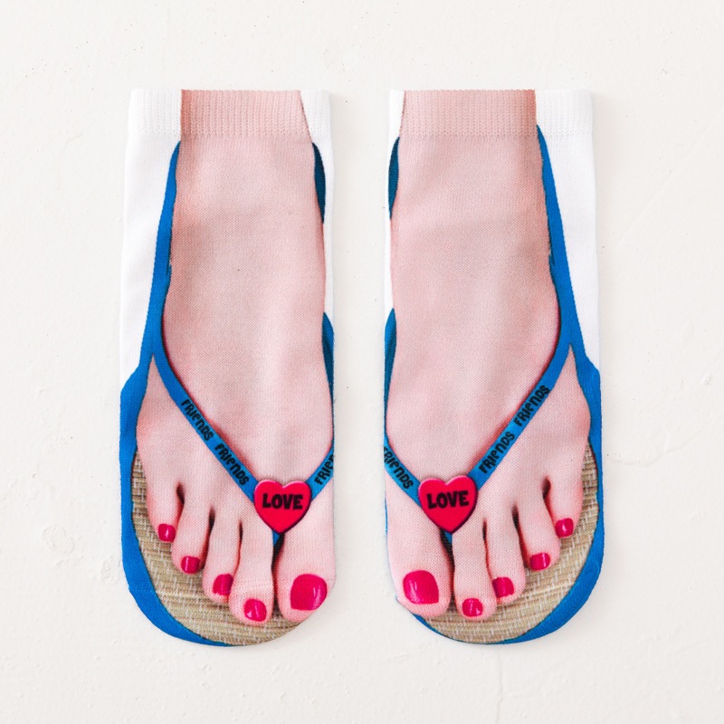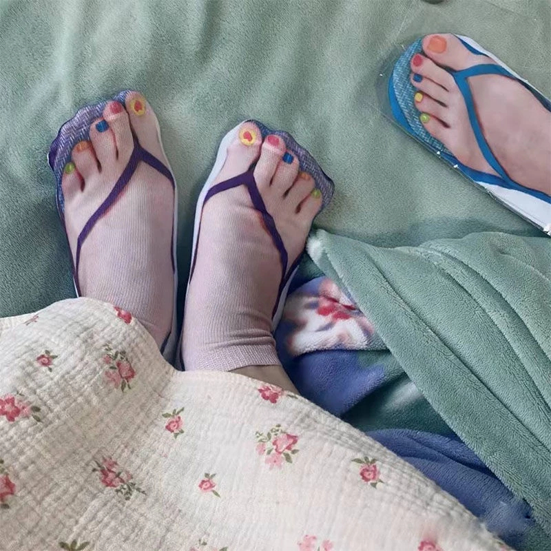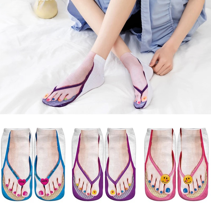 1Pairs 3D Flip Flop Socks Slipper Print Toe Socks Funny & Novelty Unisex Ankle Weird Socks