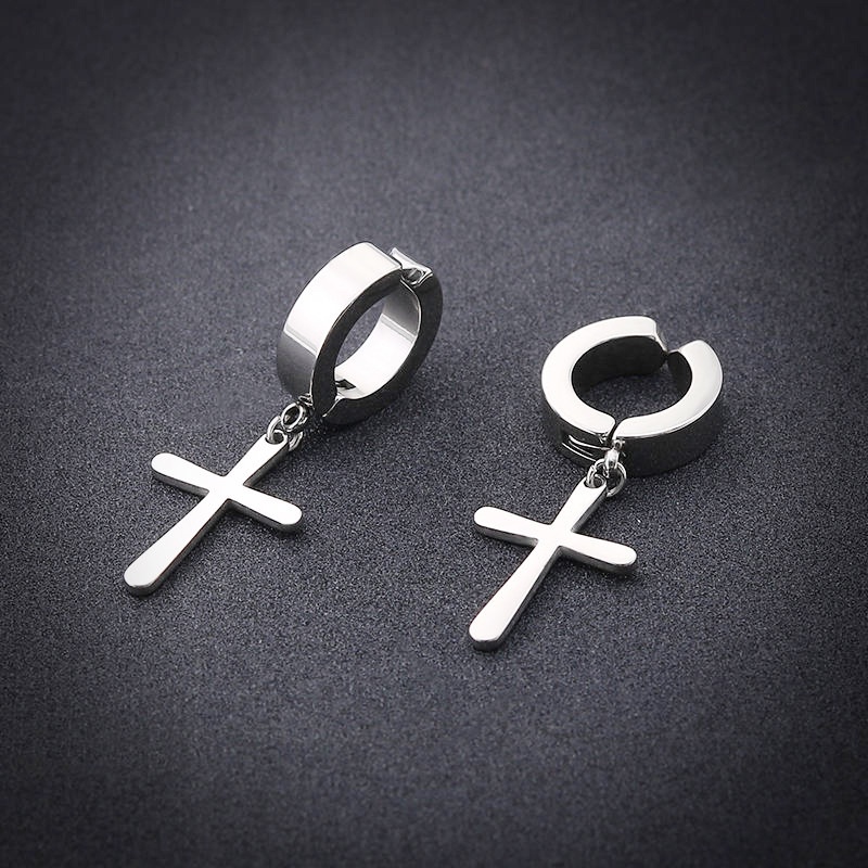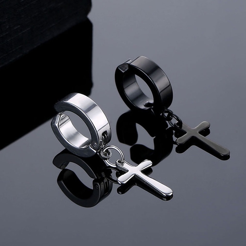 1Pairs CZ Magnetic Stud Earrings for Men Stainless Steel Non-Piercing Cross Dangle Hoop Earrings Unisex Cross Clip on Earring