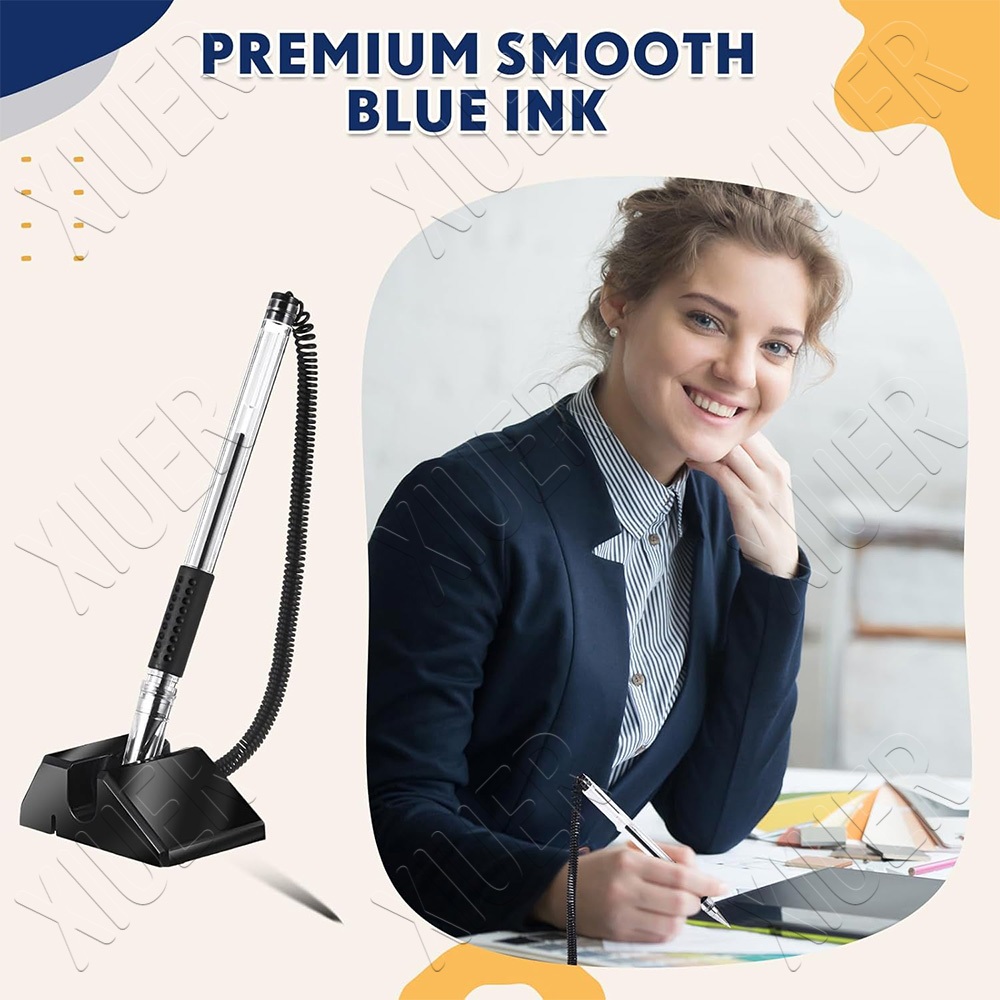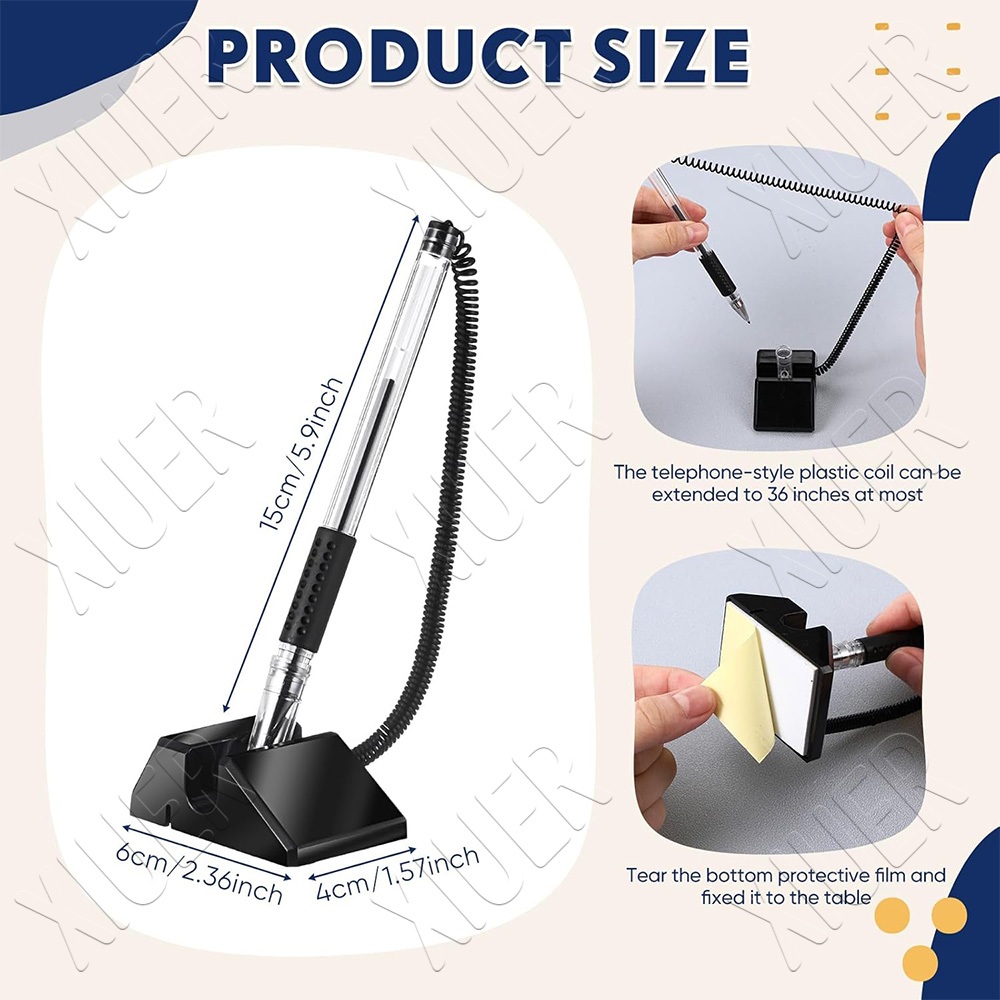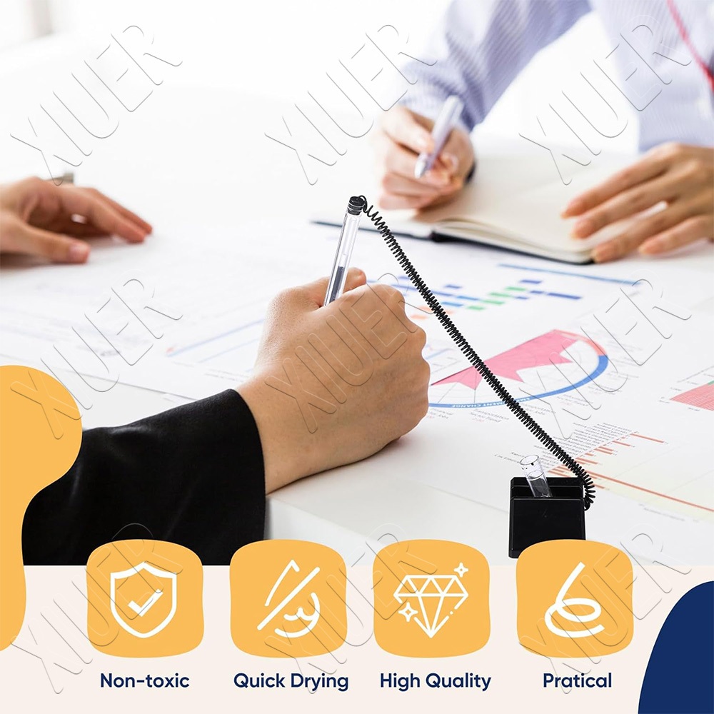 1Pc 0.5mm Desktop Pens with Plastic Chains and Holder Black Secure Counter Pen Set for Office Home
