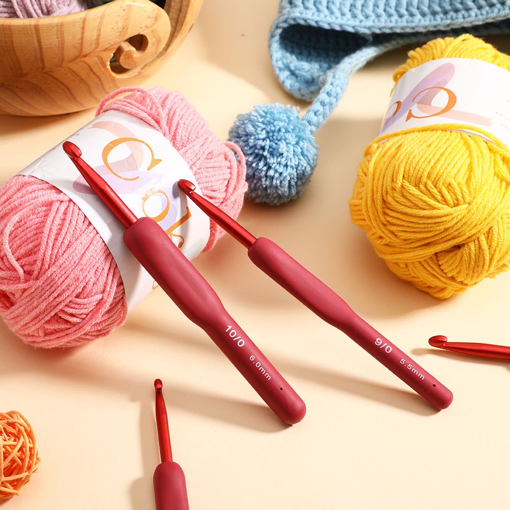 1Pc 2mm-6mm Premium Aluminum Crochet Hooks with red Soft Rubber Grip Cushioned Handles Knitting Needles