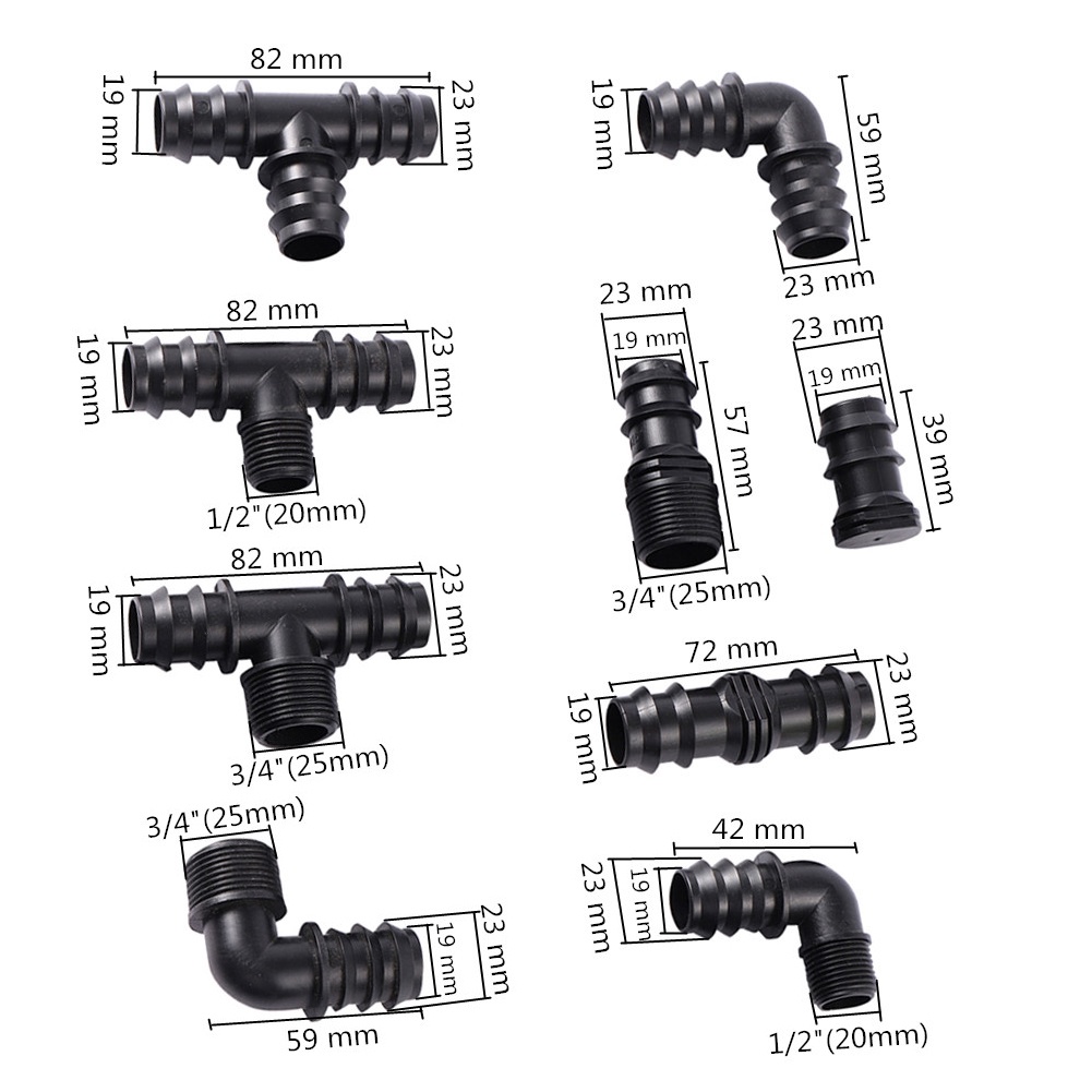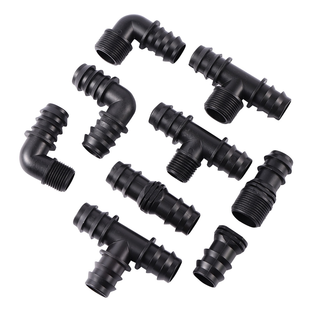 1Pc Barbed DN25 Pipe Connector 1/2" 3/4" Male Thread Port Tee Elbow Straight Optional Garden Water Agricultural Irrigation Connector
