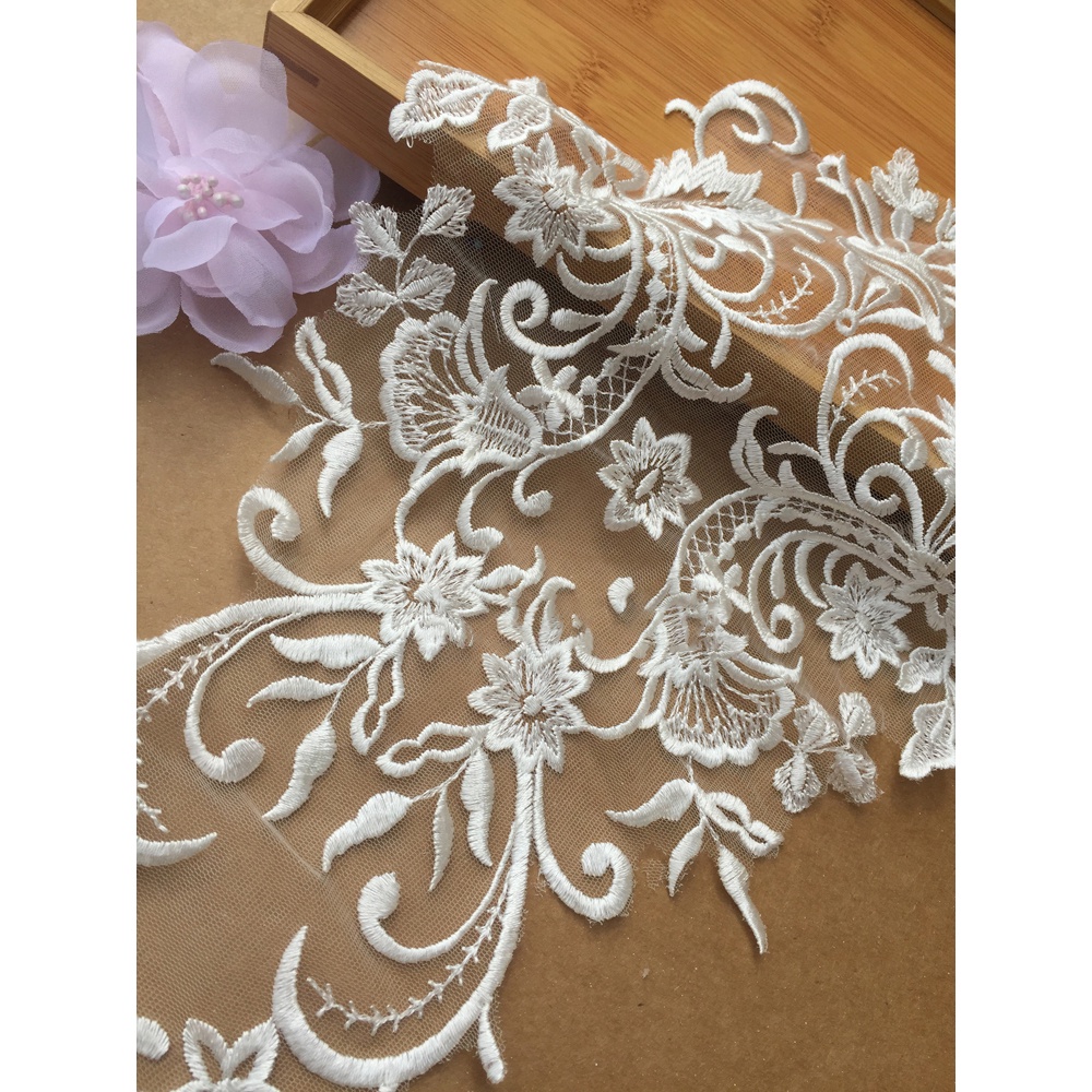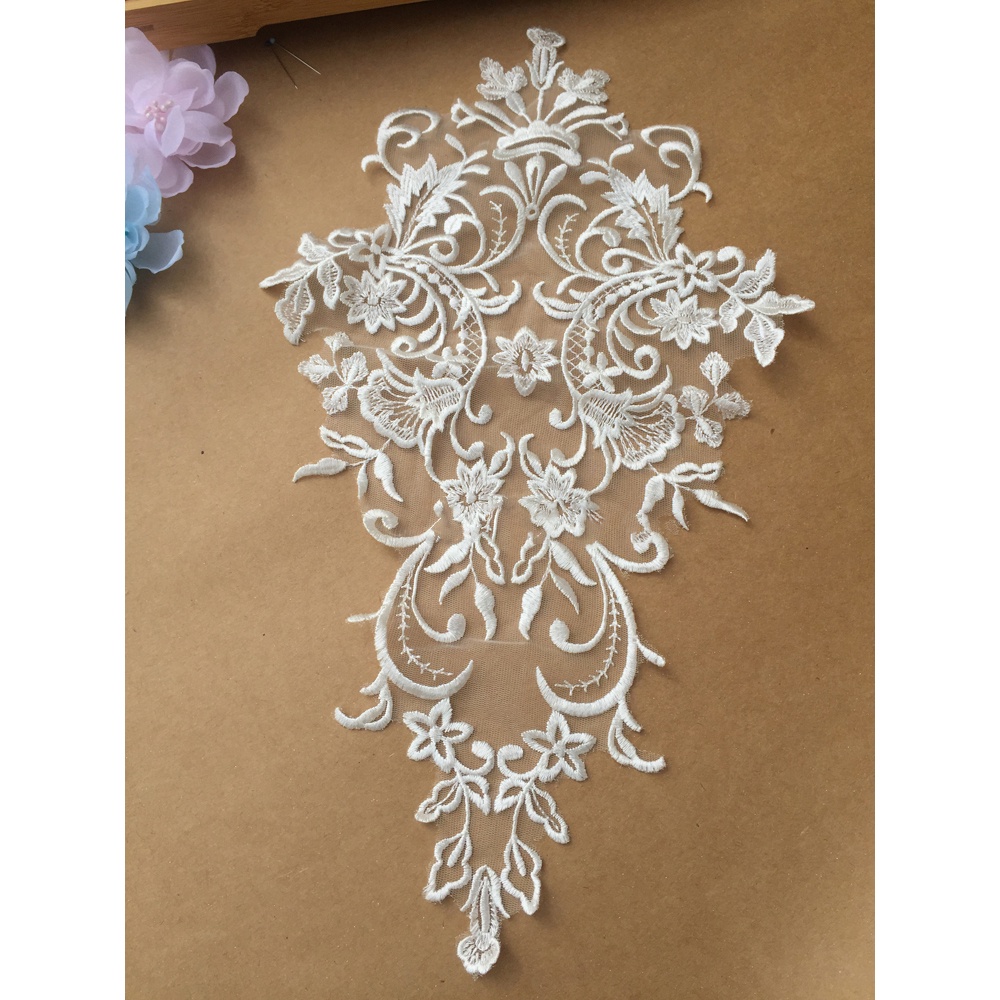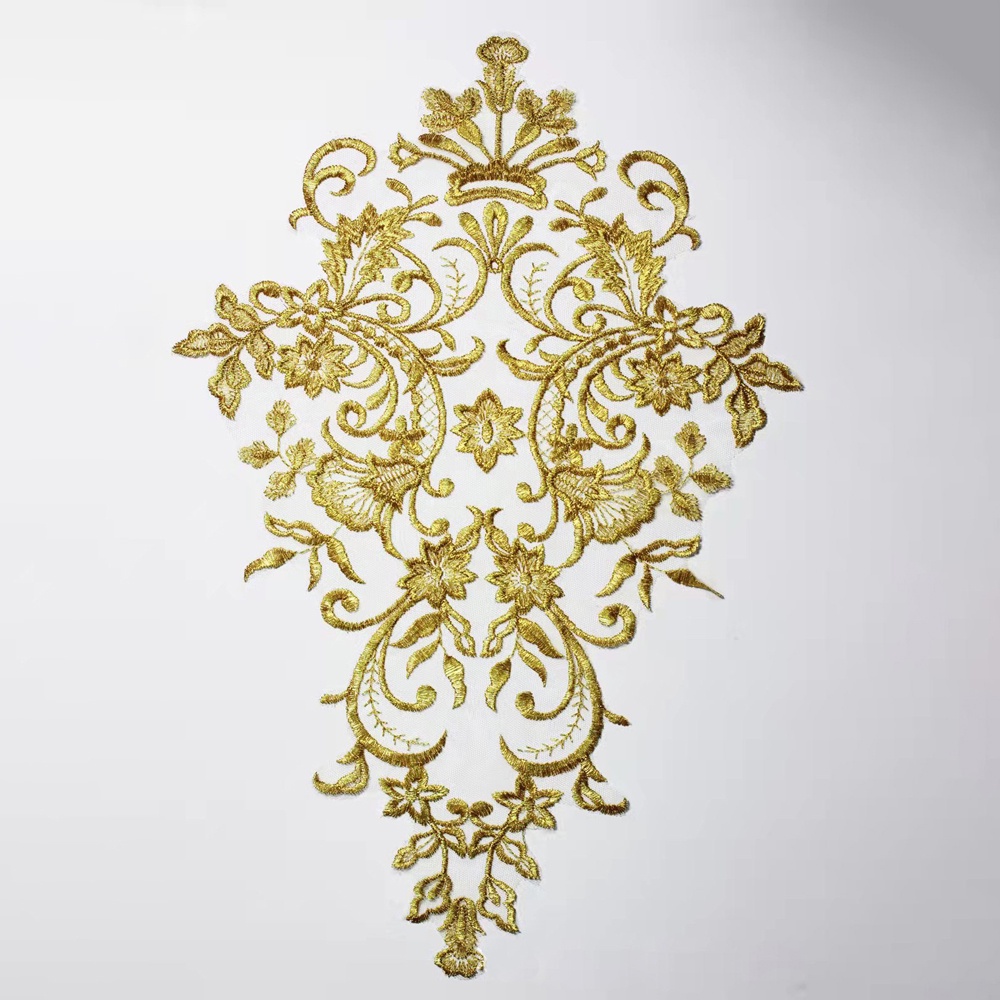 1Pc White Gold Patch Appliques Embroidery Lace Trim Fabric Cloth Sewing Patchwork DIY Craft 42*27cm