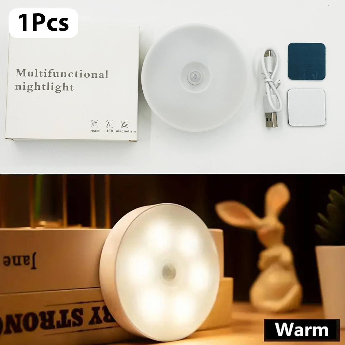 Night Light 1Pcs Magnetic Motion Sensor Usb Rechargeable Wireless Body Induction Lamp Intelligence LED Bedroom Decoration Cabinet lights, For Christmas Decoration