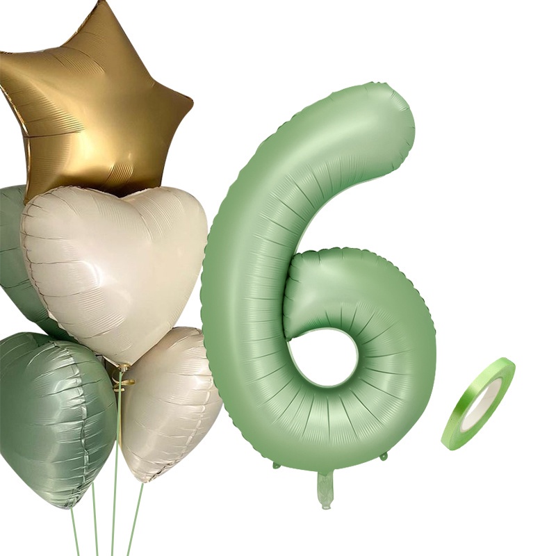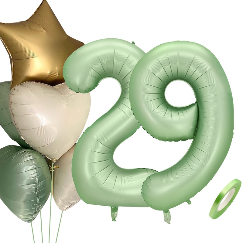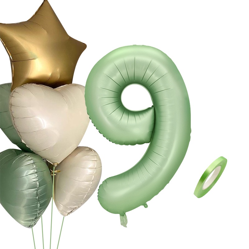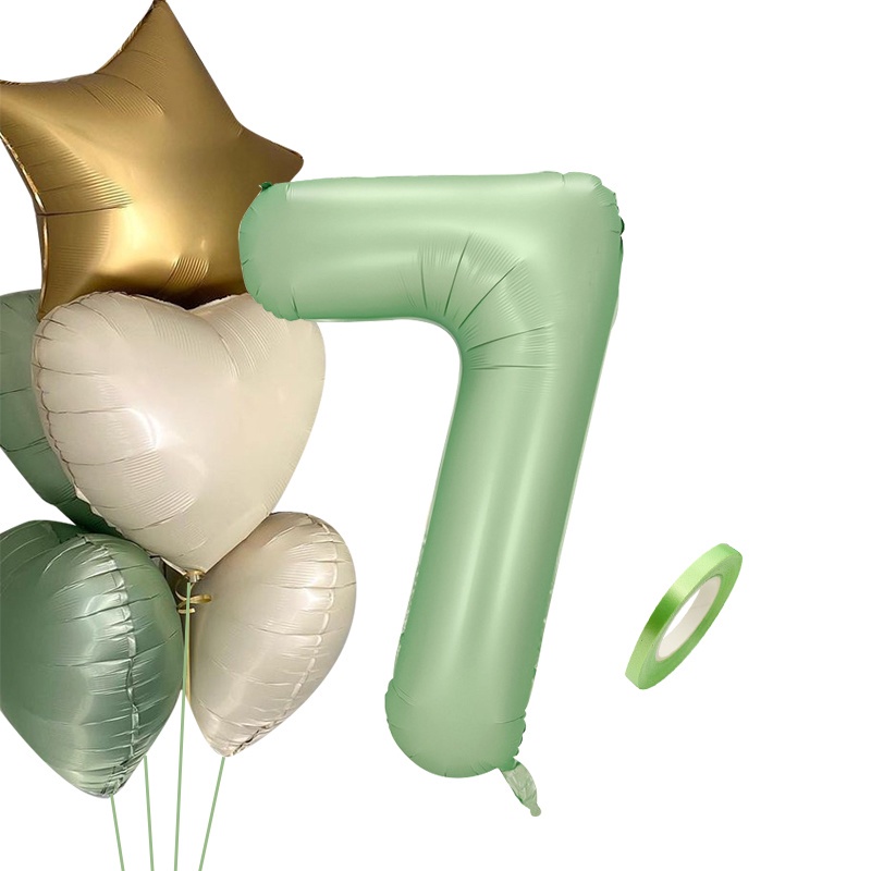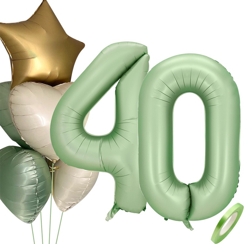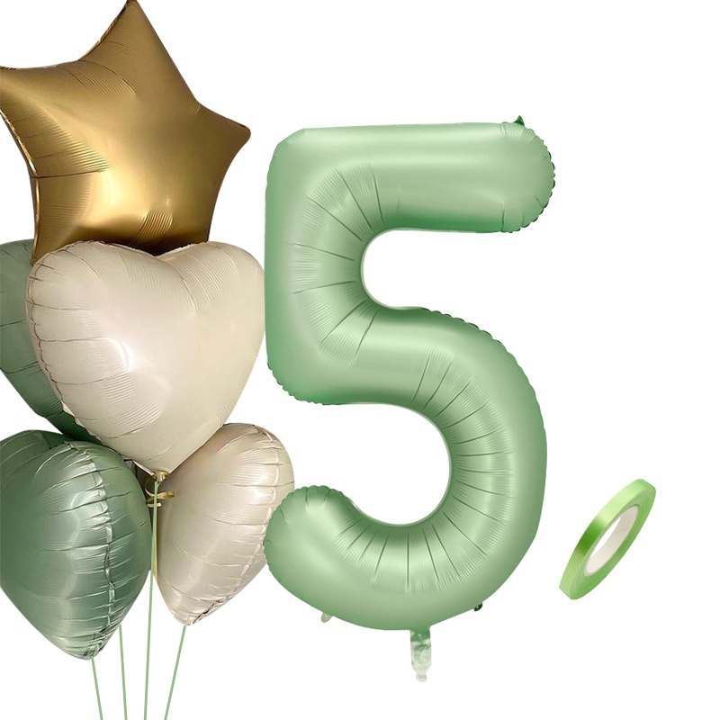 1Set 40inch Olive Green Number Balloon with Vintage Beige Heart Balloons for 30 40 50 60 Happy Birthday Kids Party Decoration Supply