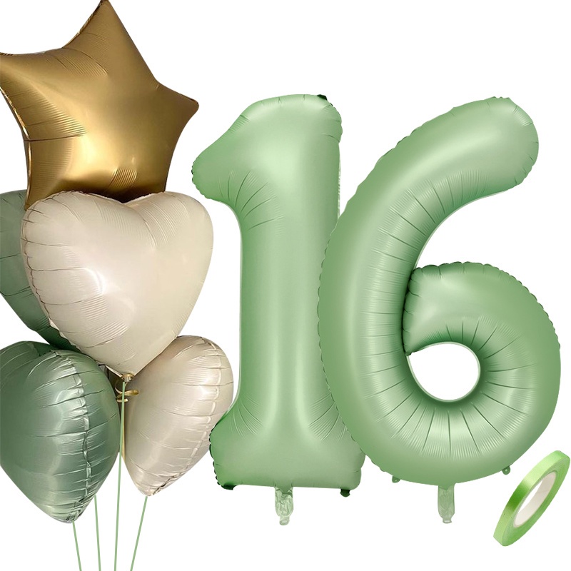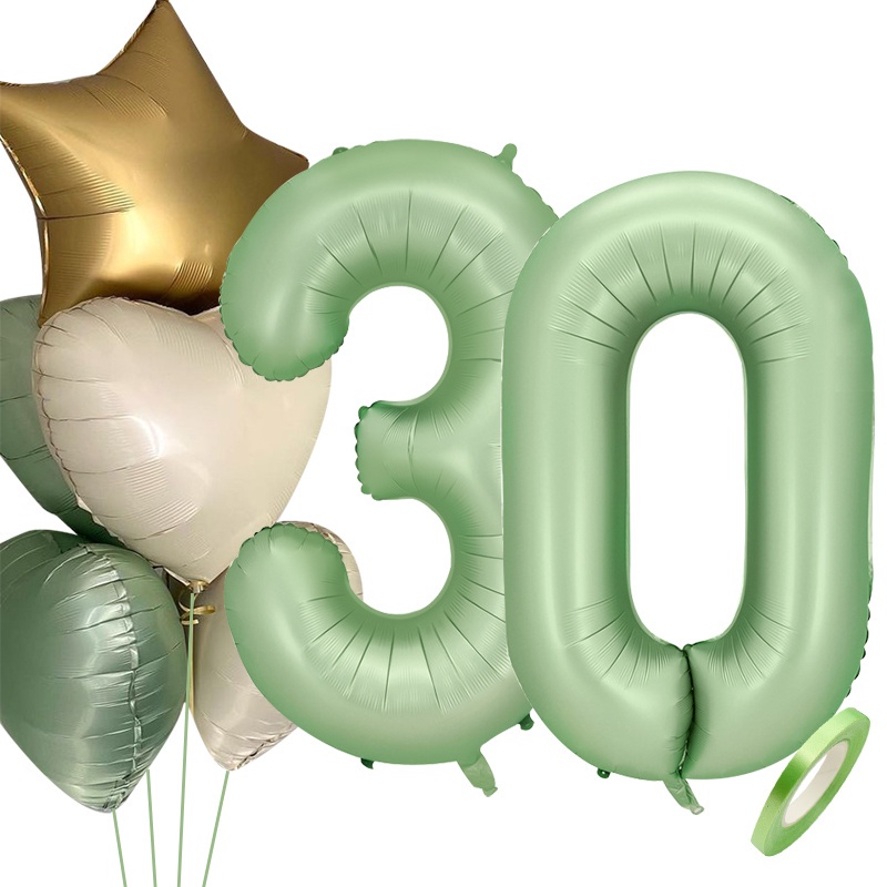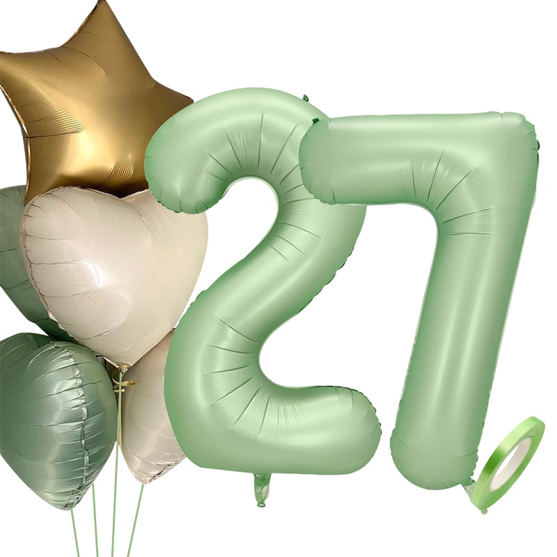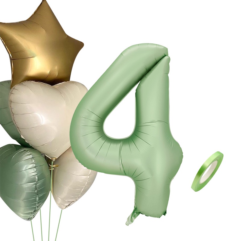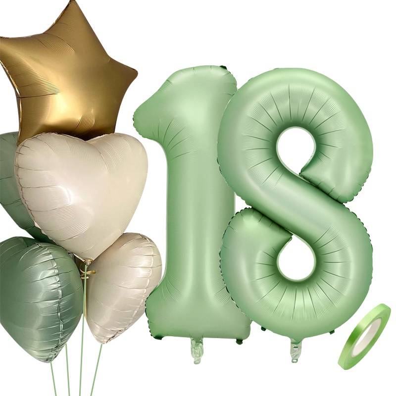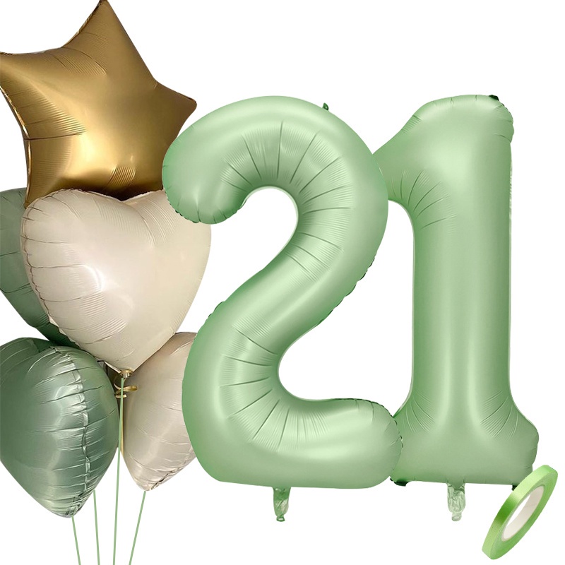 1Set 40inch Olive Green Number Balloon with Vintage Beige Heart Balloons for 30 40 50 60 Happy Birthday Kids Party Decoration Supply