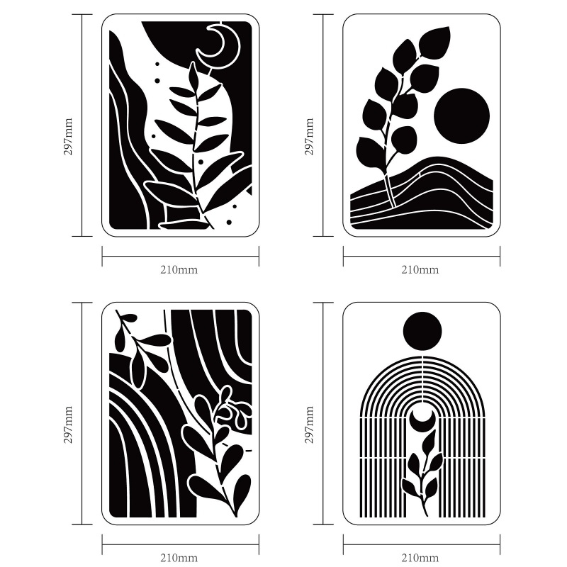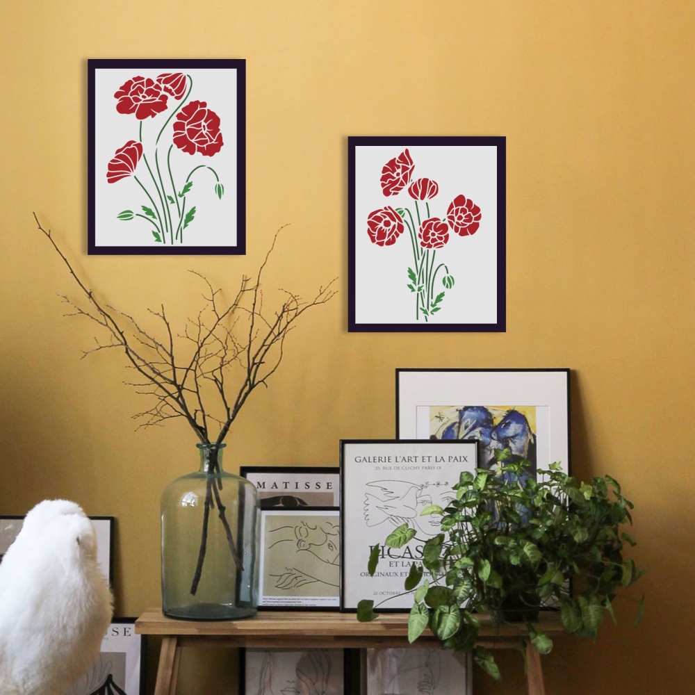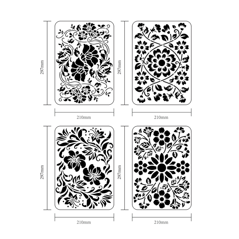 1Set 4PCFlower Bouquet Stencil29.7x21cm Large Wall Stencil Wildflower Stencils Bouquet Painting Stencils Plastic Field Flower Craft Stencil Spray Paint Stencils for Home Decoration
