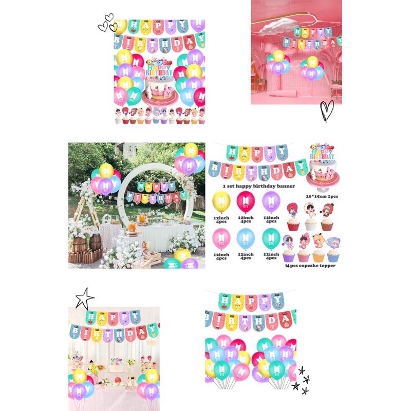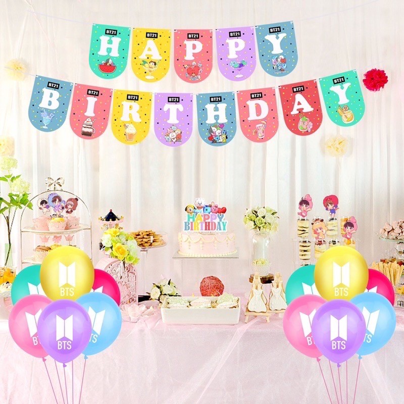 1Set BTS Balloons Birthday Cake Topper Balloons Banner Bangtan Boys Party Decoration