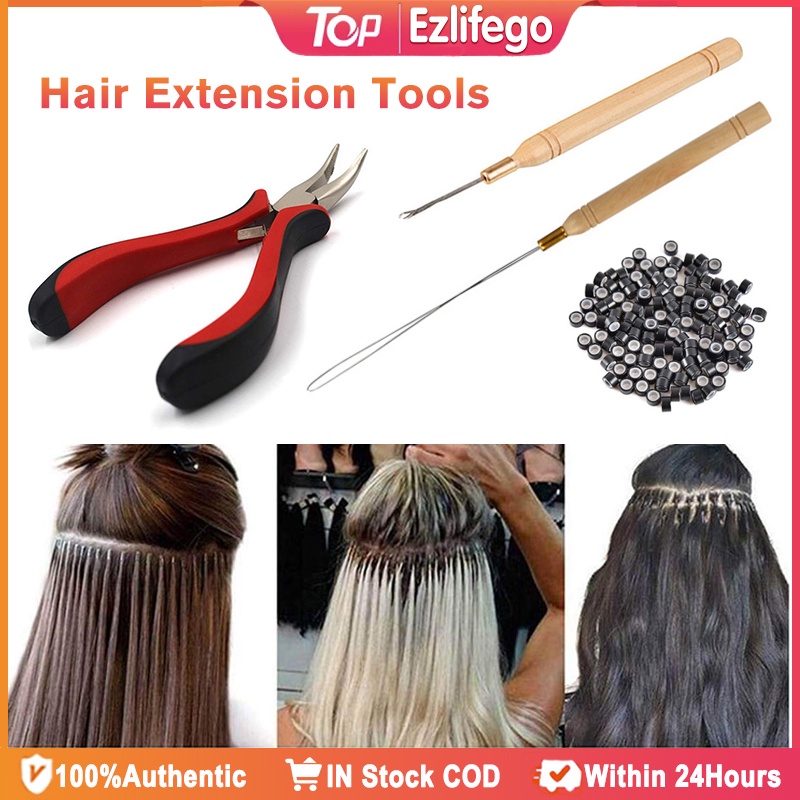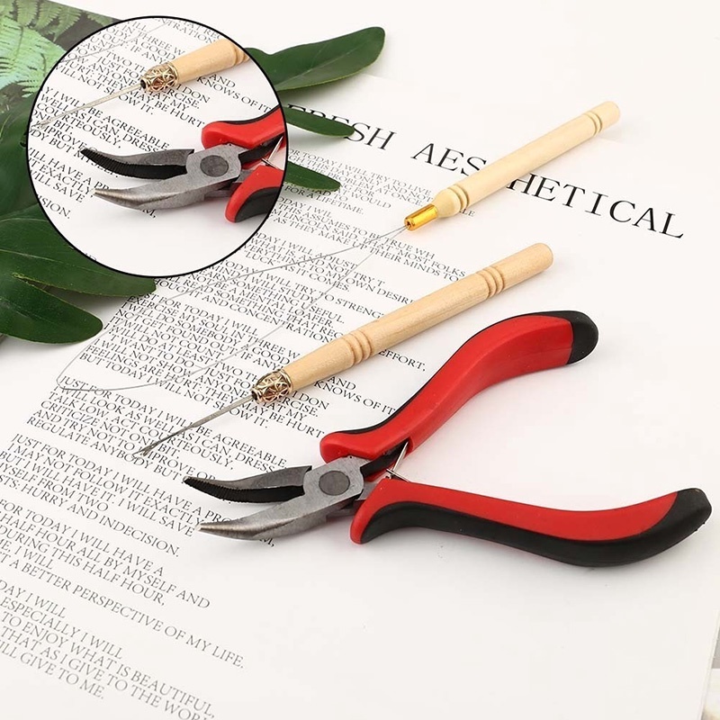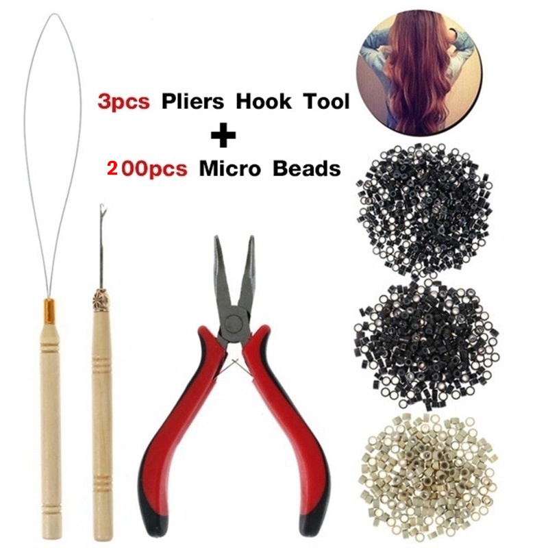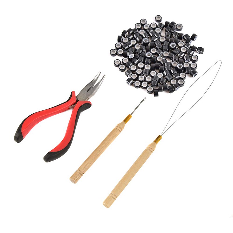 1Set Hair Extension Tool Set With Micro Ring Hair Extension And Plier Hook Pulling Needle