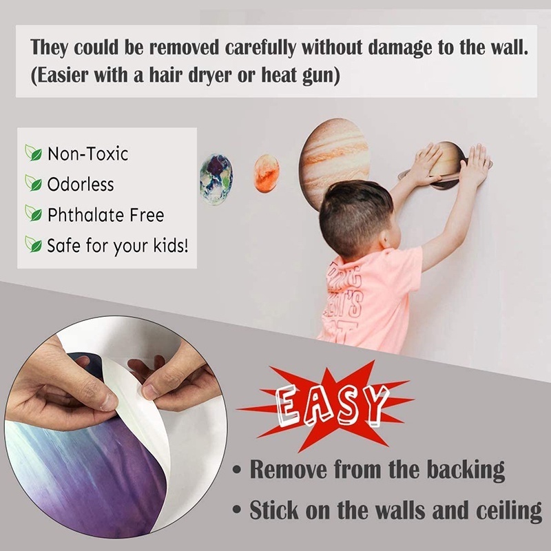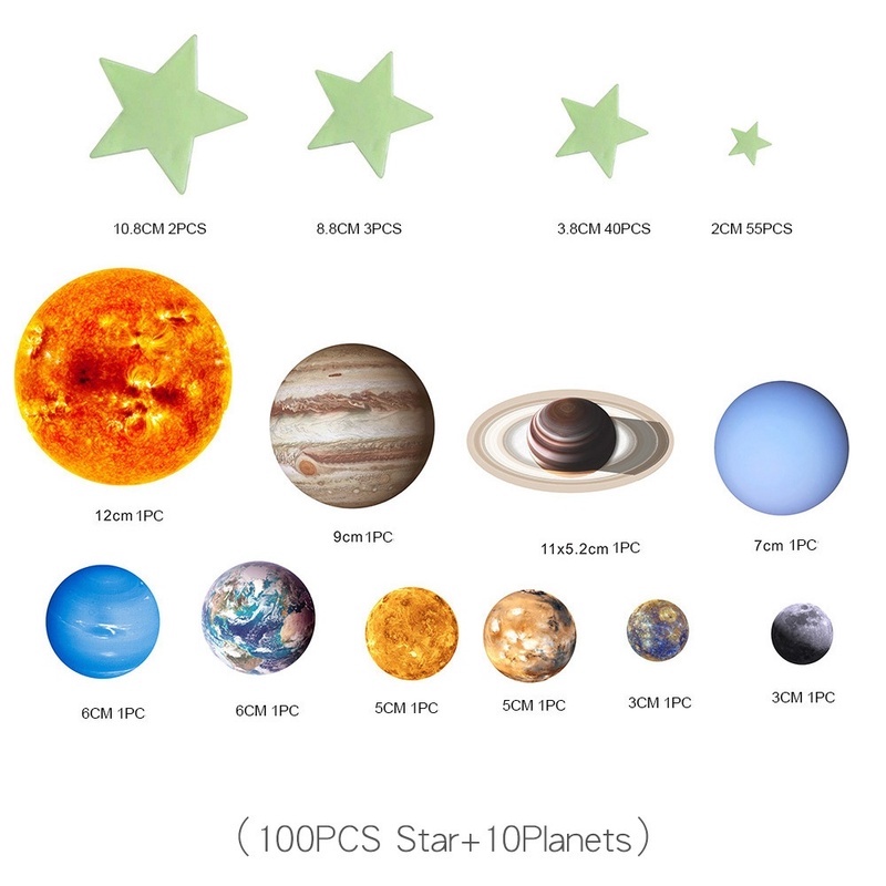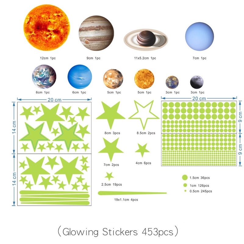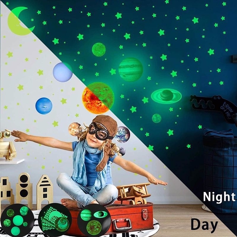 1Set Planet Solar System Fluorescent Luminous Planets PVC Wall Stickers Glow In Dark Galaxy Kids Bedroom Wall Decal
